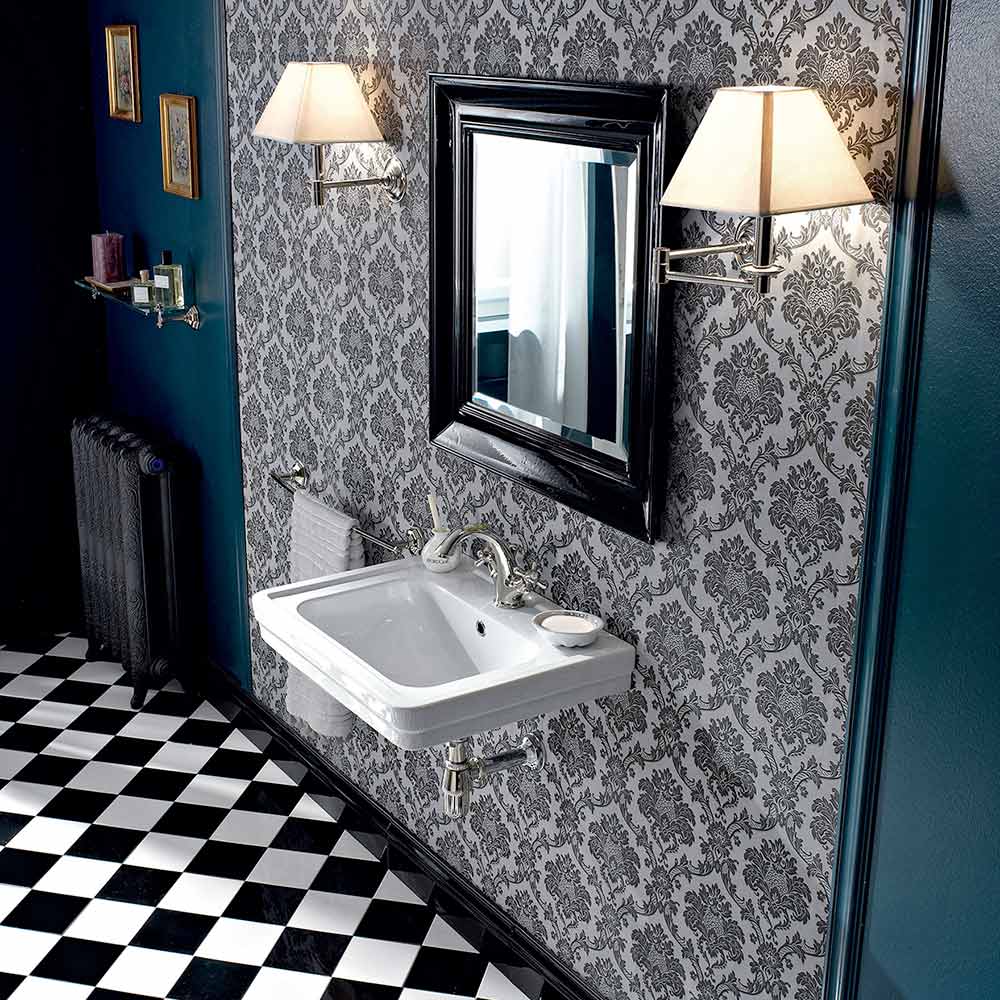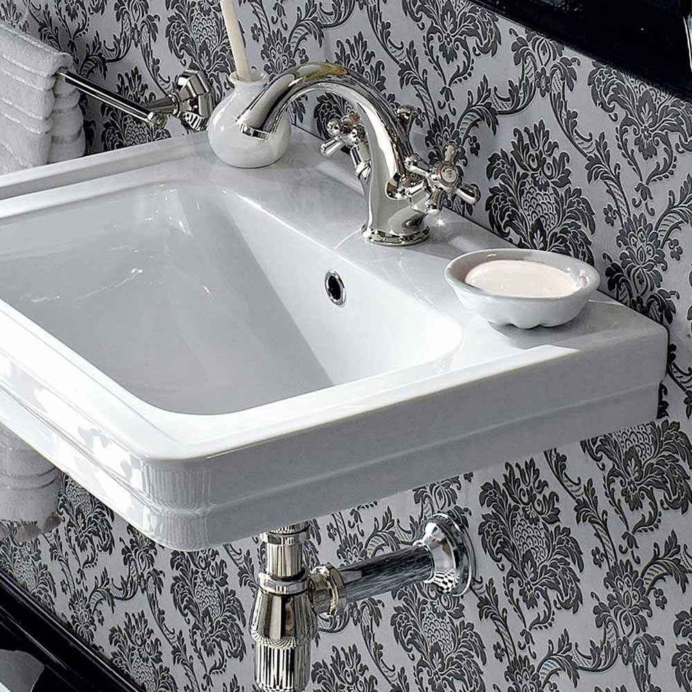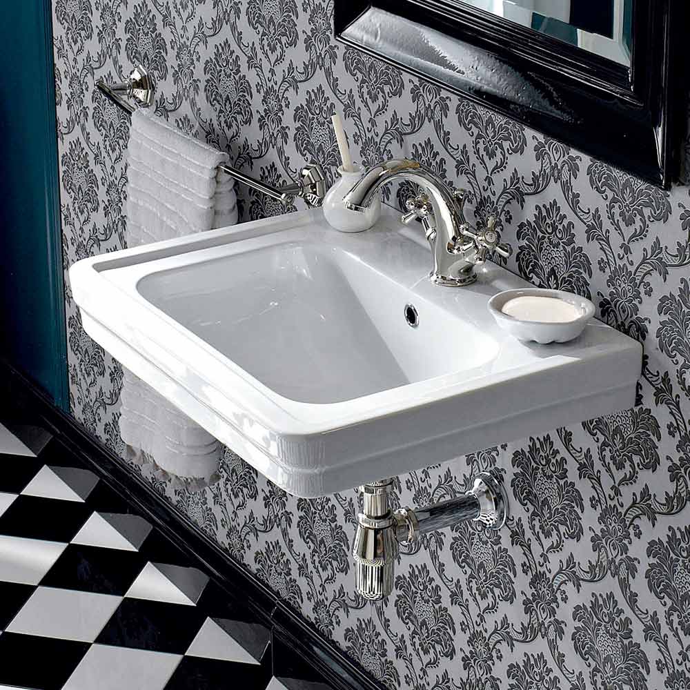 Umywalka wisząca w klasycznym stylu z białej ceramiki, wykonana we Włoszech, w Marwa.