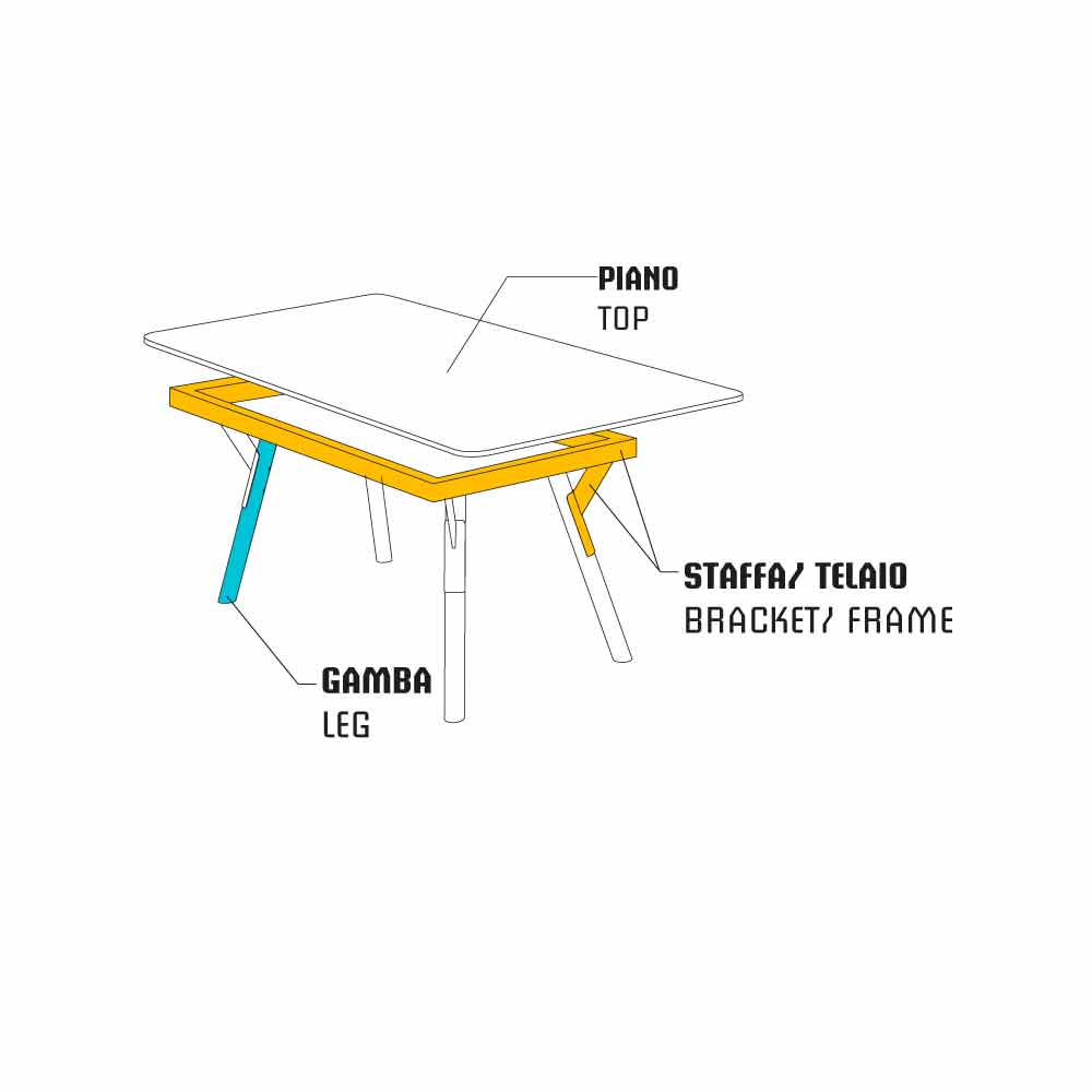 Struktura z lakierowanej stali nierdzewnej inox (wspornik + nogi). Blat dostępny w laminacie PHL o grubości 12mm lub z drewna teakowego o grubości 30 mm.