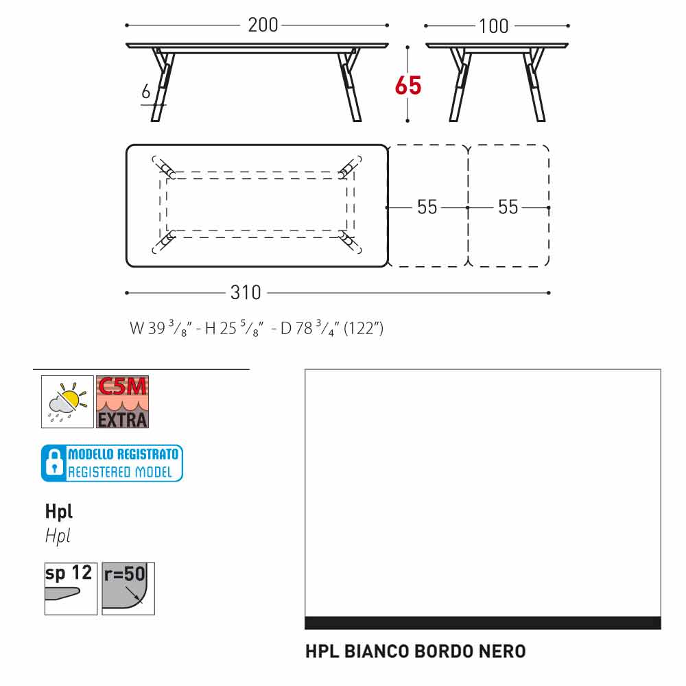 Stół z nowoczesna strukturą (wsporniki + nogi) z lakierowanej stali nierdzewnej. Blat z HPL *grubość 12 mm lub z drewna tekowego *grubość 30 mm.