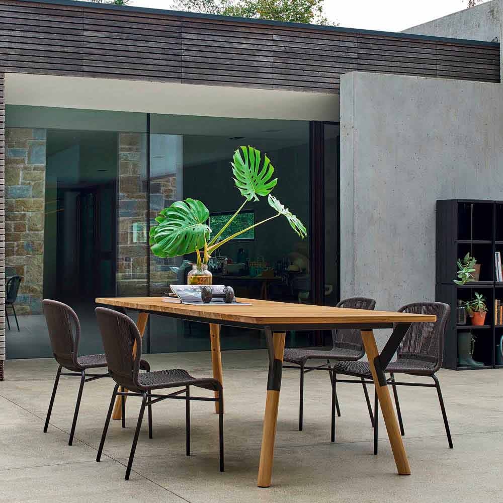 Varaschin Link stół ogrodowy z drewnianymi nogami, wysokość 75 cm