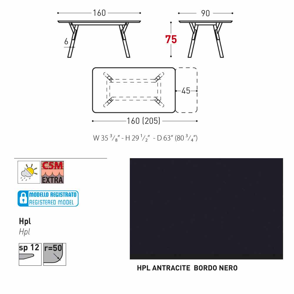 Varaschin Link stół rozkładany z nogami drewnianymi, wysokość 75 cm
