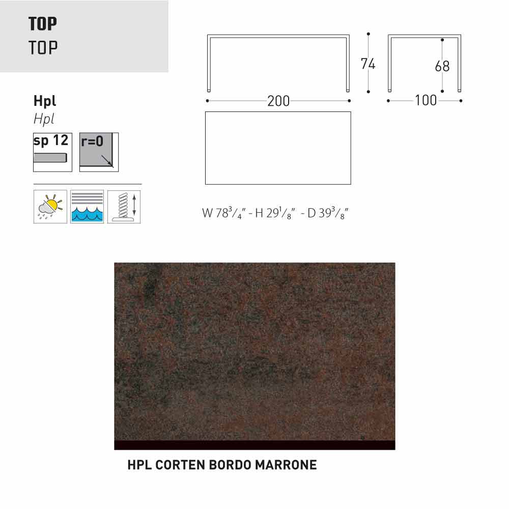 Struktura ze stali z blatem z HPL, o 12 mm grubości.