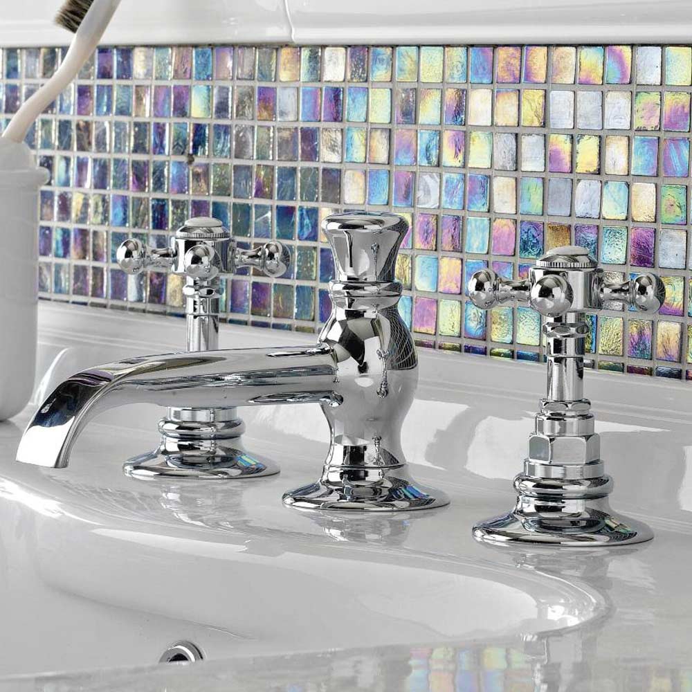 3-otworowa bateria umywalkowa do umywalki mosiężnej w stylu vintage Elisea, wyprodukowana we Włoszech.