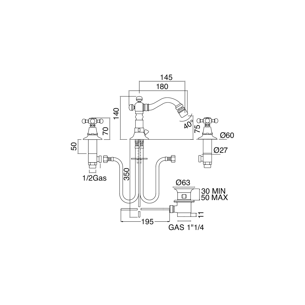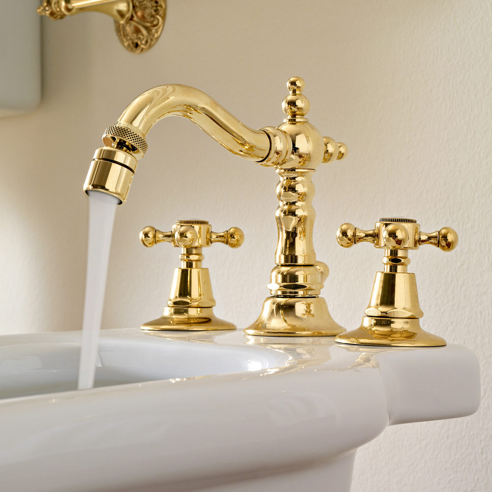 3-otworowa bateria bidetowa w stylu vintage wykonana we Włoszech z mosiądzu.