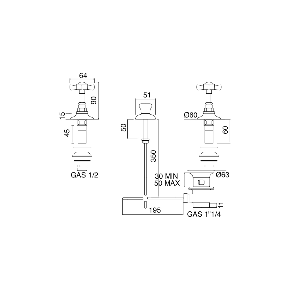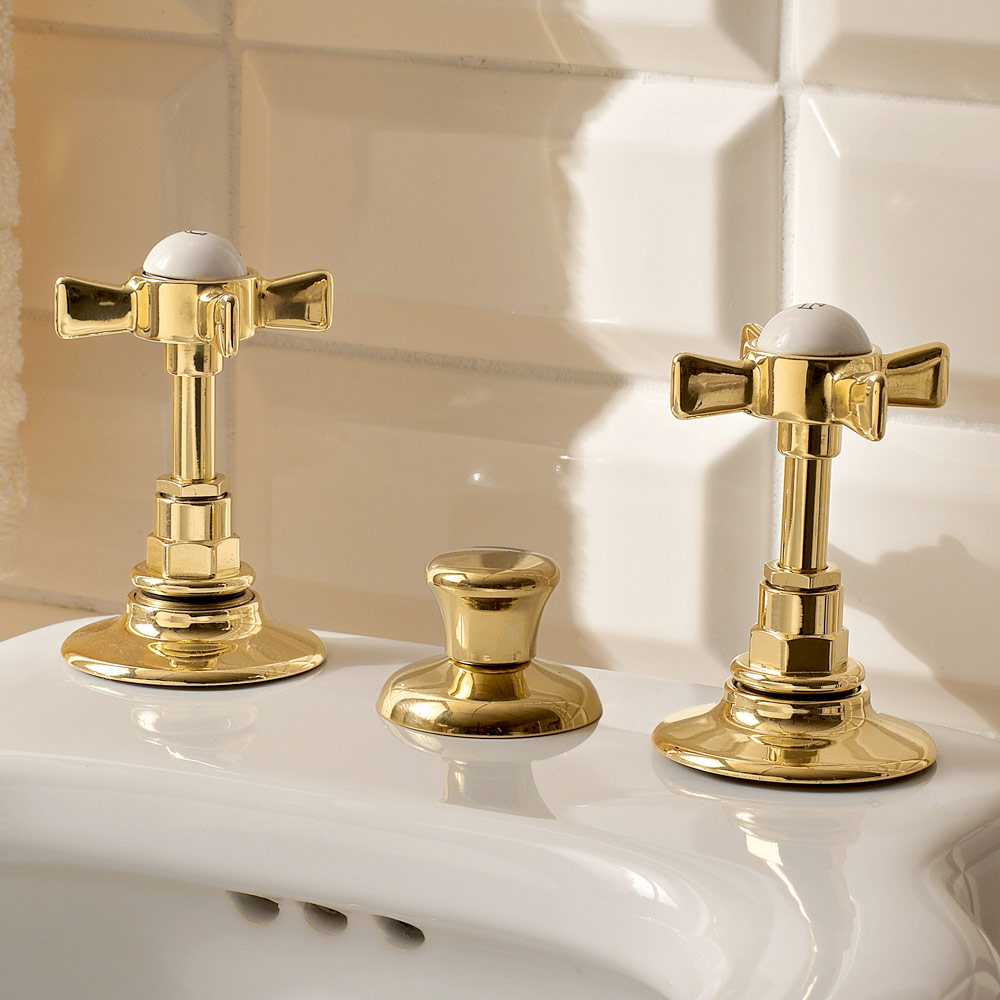 bidetowa bateria 3-otworowa z odpływem i wewnętrzną wylewką.