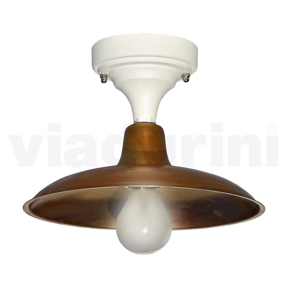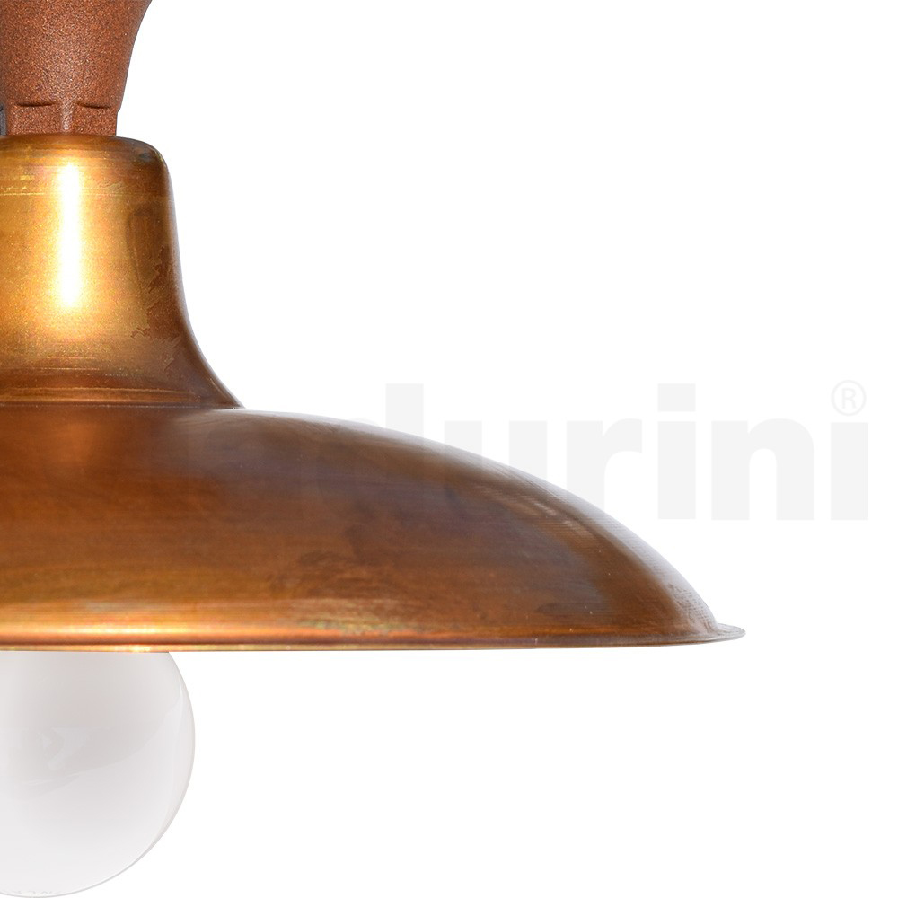 Vintage zewnętrzna aluminiowa lampa sufitowa z mosiężnym dyfuzorem Wyprodukowano we Włoszech.