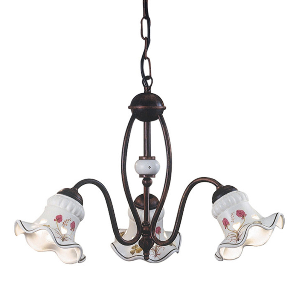 Żyrandol do salonu z 3 lub 5 lampkami z ręcznie zdobionego żelaza i ceramiki, wyprodukowany we Włoszech przez Ferroluce.