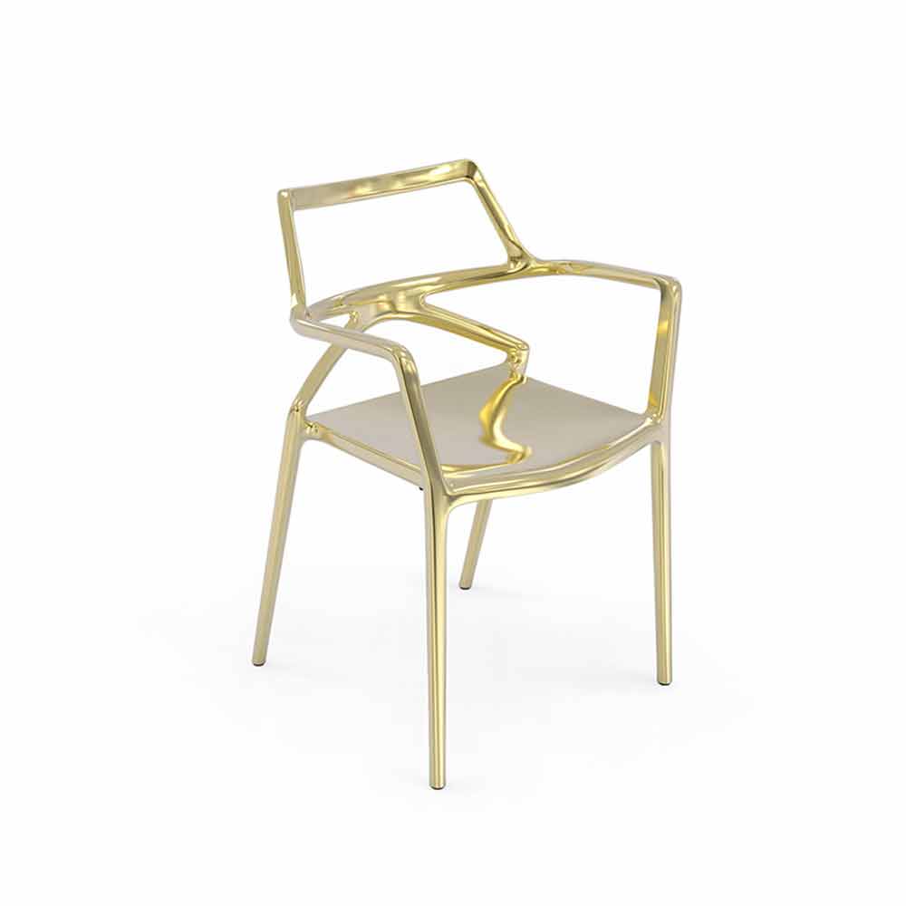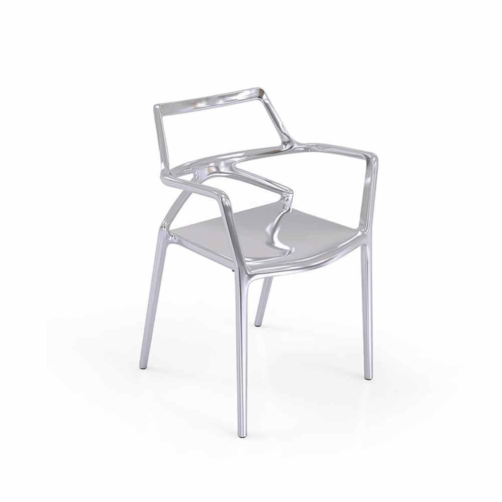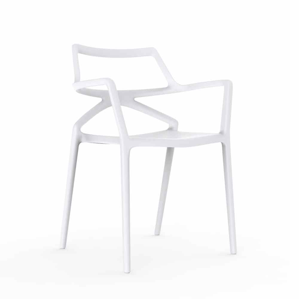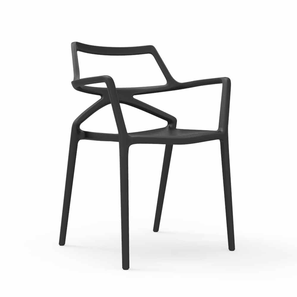 Krzesło z podłokietnikami Delta by Vondom wykonane z polipropylenu formowane wtryskowo z gazem formowanym powietrzem i wzmacniane włóknem szklanym. Stackowalny.