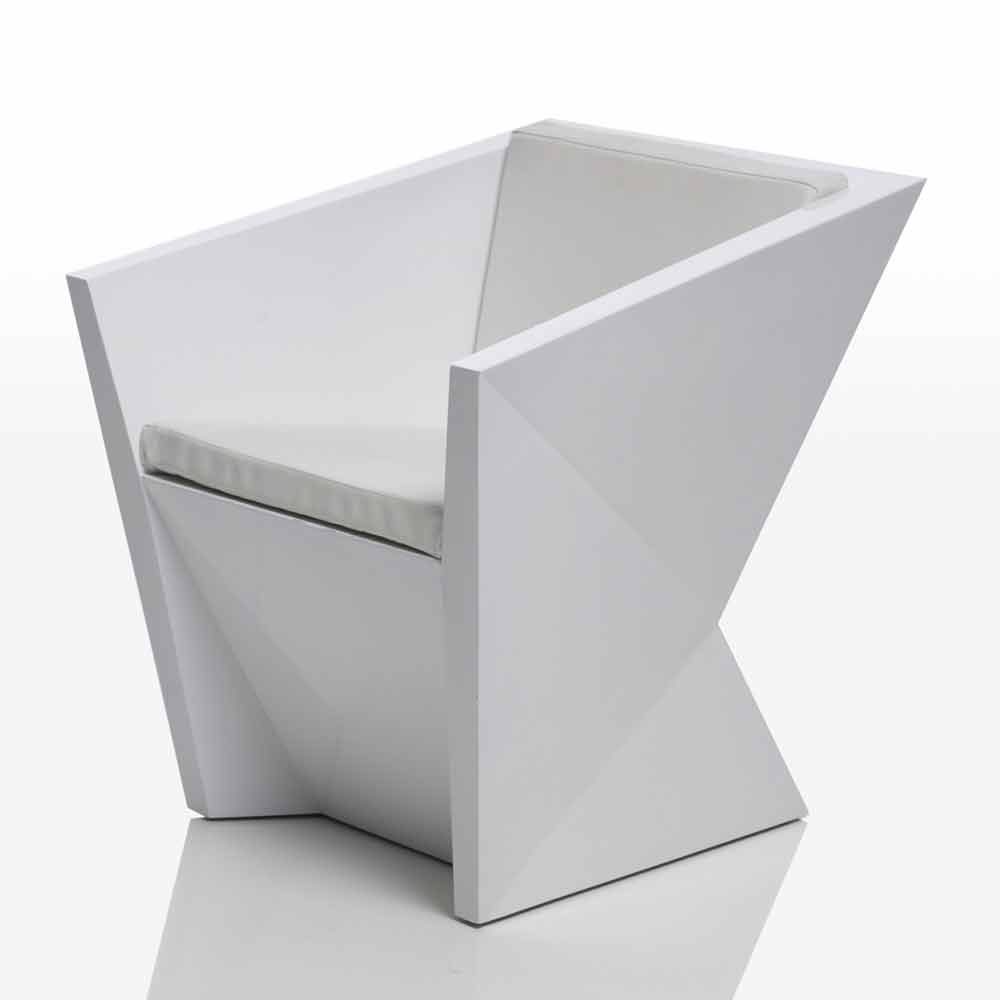Faz od Vondom, biały lakierowany fotel ogrodowy, wykonany z żywicy polietylenowej za pomocą formy obrotowej o podwójnej ściance. 100% do recyklingu.