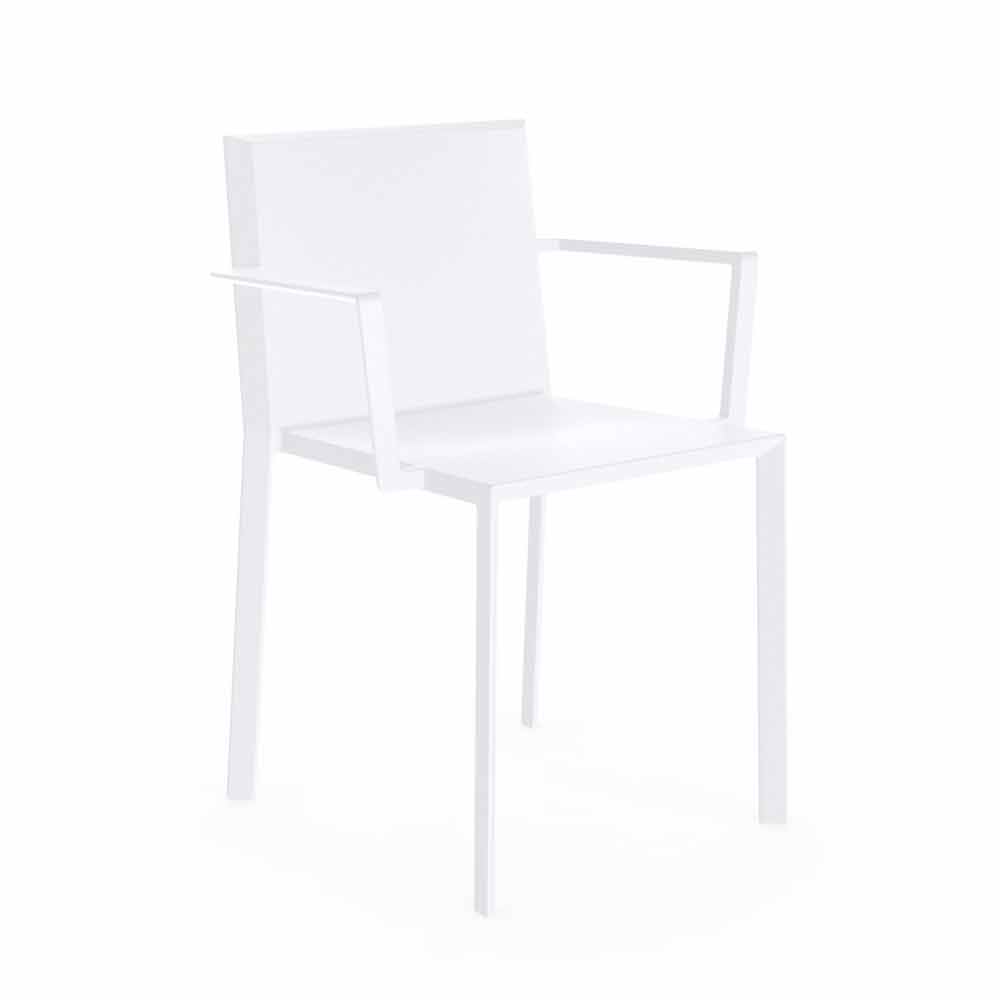 Krzesło do układania w stos z podłokietnikami Kwarc firmy Vondom z formowanego pneumatycznie poliamidu z wtryskiem gazu i wzmocnionego włóknem szklanym.
