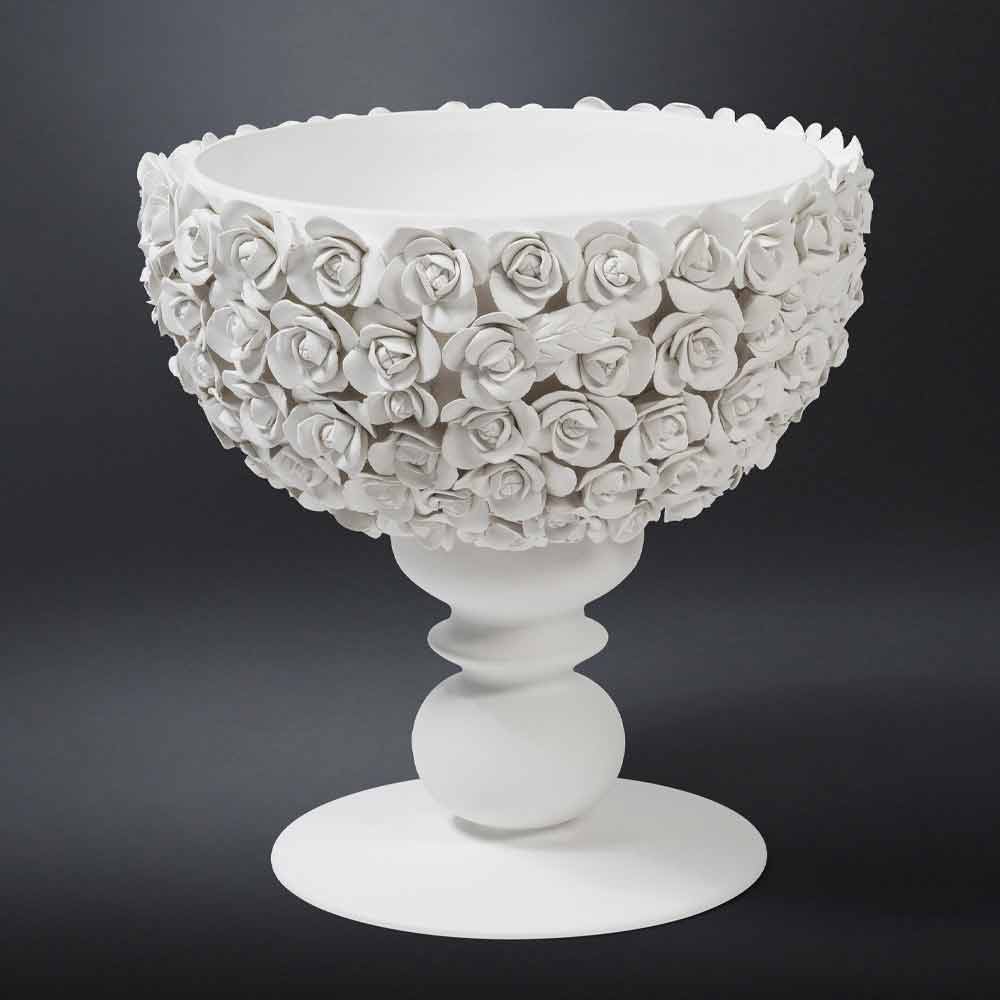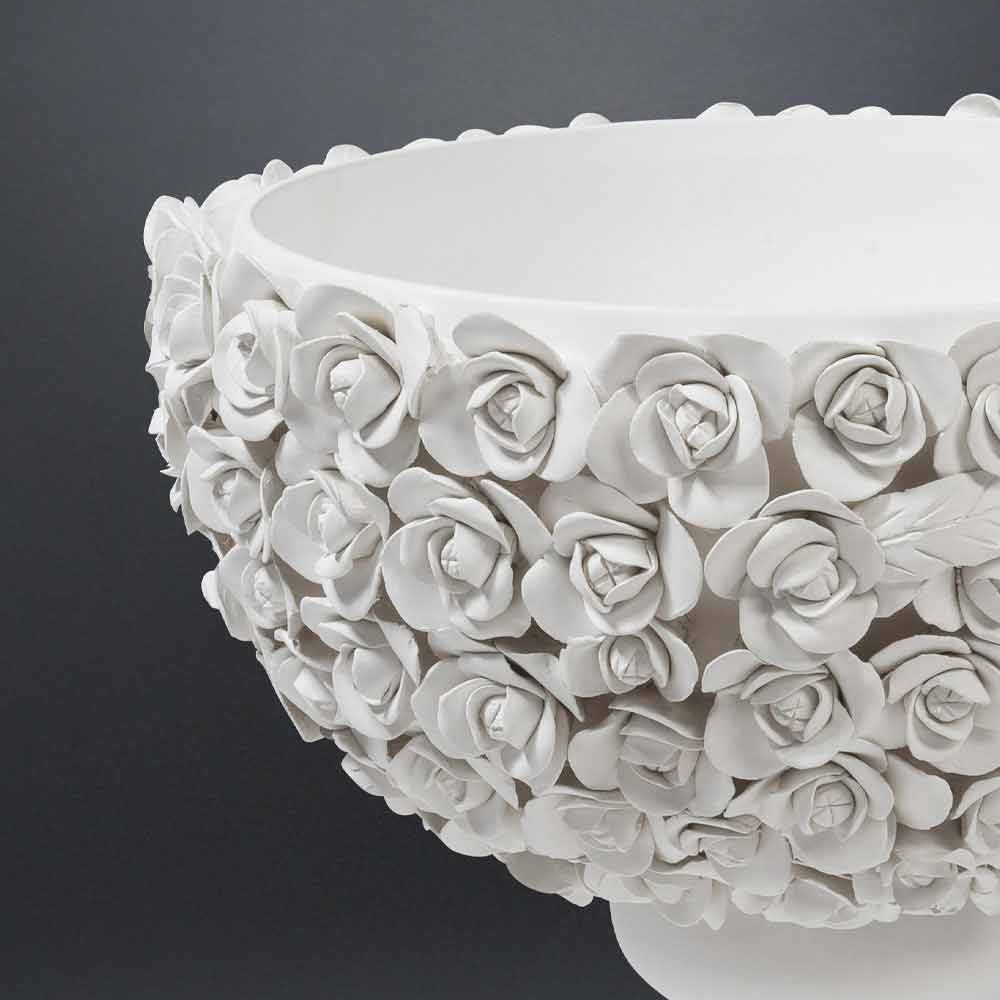 Wazon do wnętrz z matowej białej ceramiki wykonany ręcznie we Włoszech. Elegancja i klasyczny styl to główne cechy tego wspaniałego elementu dekoracyjnego, którego figurę podkreślają miękkie i kręte linie, tworząc wzór przywodzący na myśl antyczne rzeźby typowe dla sztuki włoskiej. Estetykę wzbogaca szczególna obróbka florystyczna, która jeszcze bardziej podnosi wyrafinowaną stronę produktu. Zastosowanie ceramiki i rzemiosło podkreśla jej wartość i jakość, dając efekt, który można dostosować do każdej sytuacji stylistycznej. Idealna estetyka dla najróżniejszych środowisk, od wyposażenia domu po wyposażenie hoteli, restauracji, powierzchni kontraktowych, spa, ale także jako oprawa imprez i wesel.