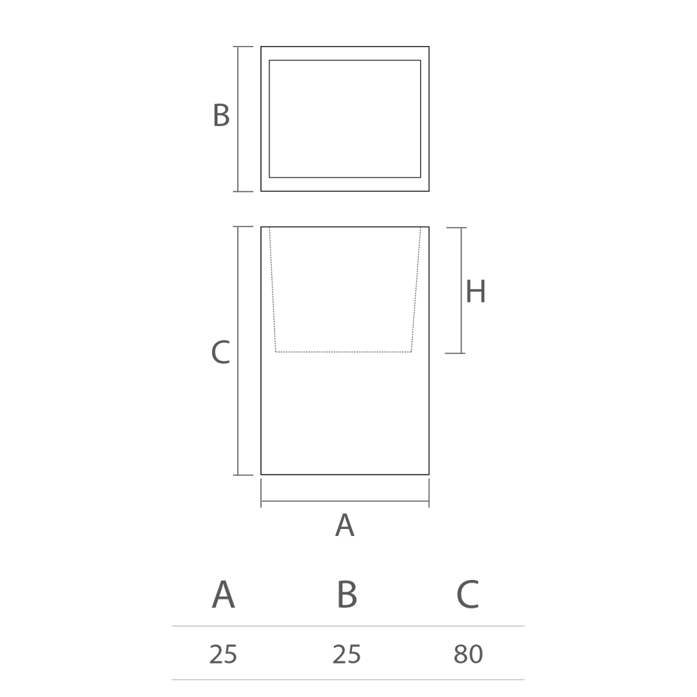 Dostępne rozmiary:- Dł. 25 x gł. 25 x wys. 80 cm