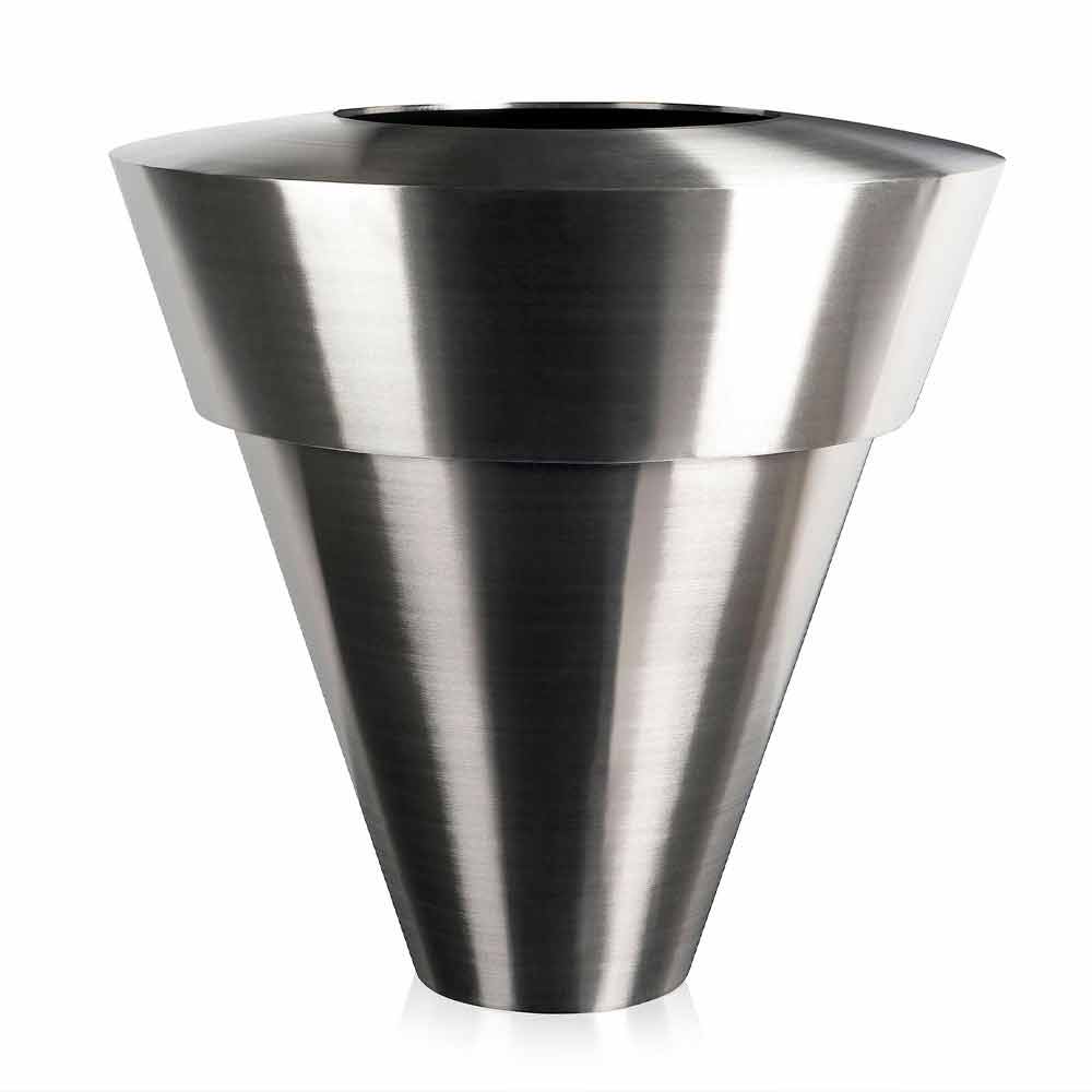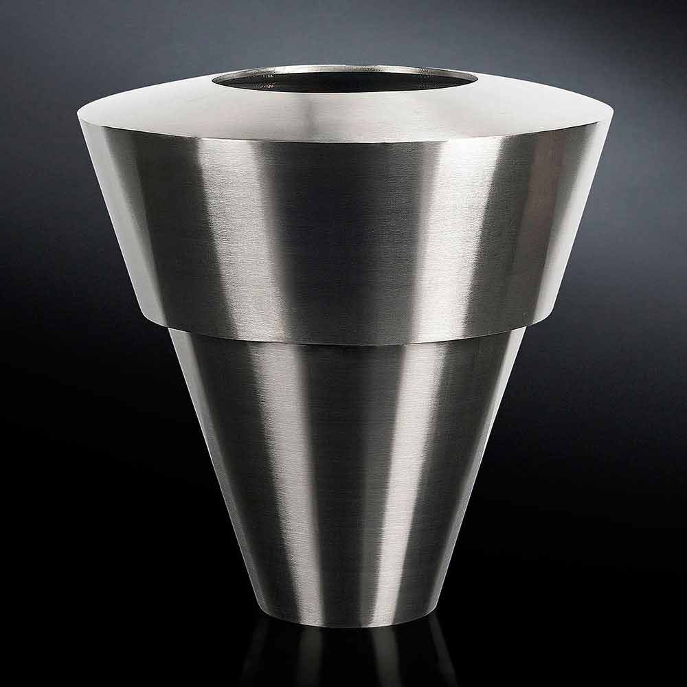 Elegancki wazon do wnętrz ze szczotkowanej stali wyprodukowany we Włoszech.