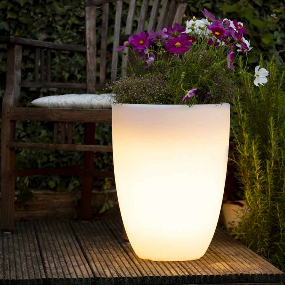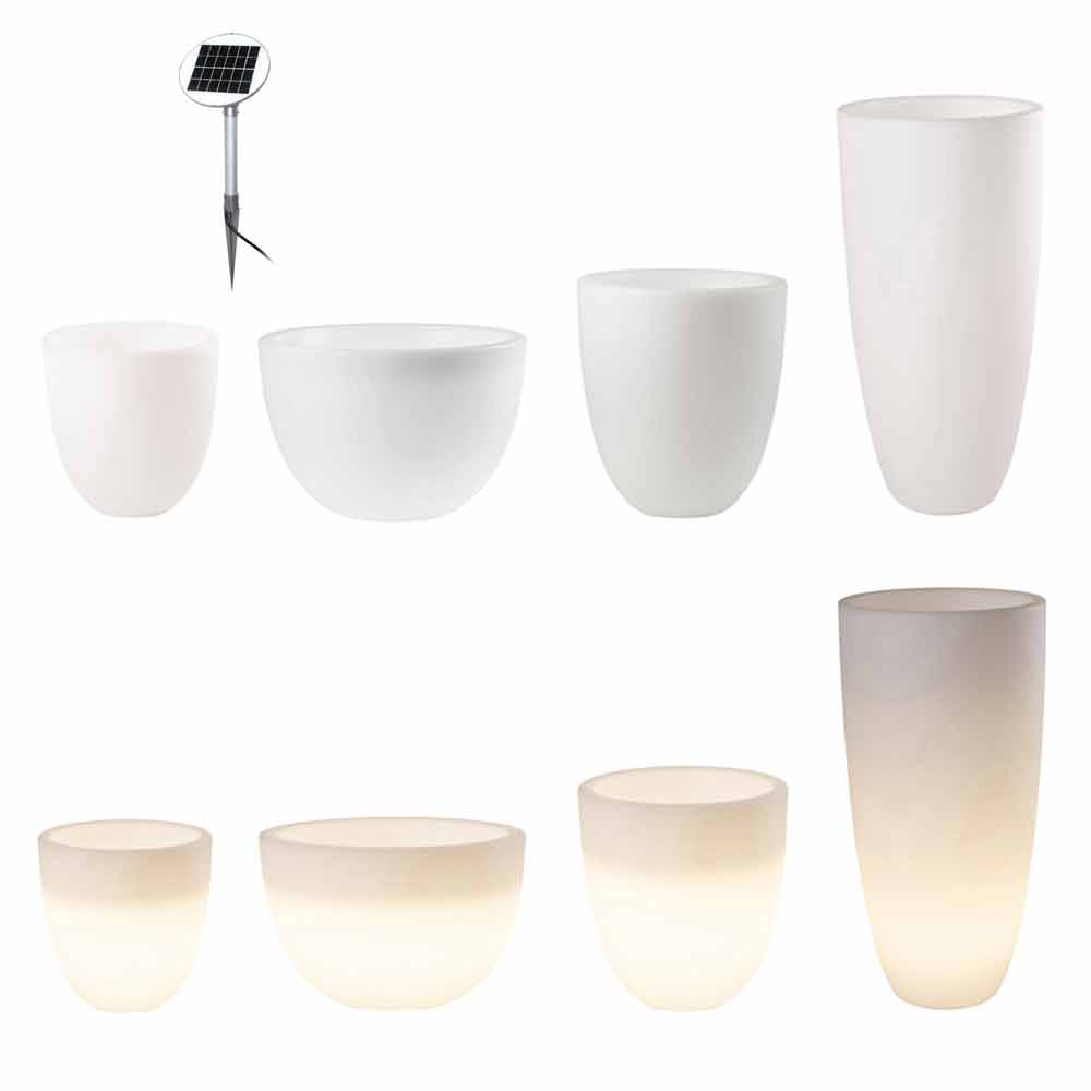 Świecący wazon o nowoczesnym i wszechstronnym designie do wnętrz lub na zewnątrz z diodami LED lub solarnymi w różnych rozmiarach.
