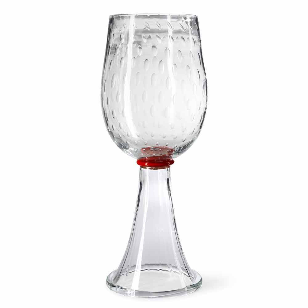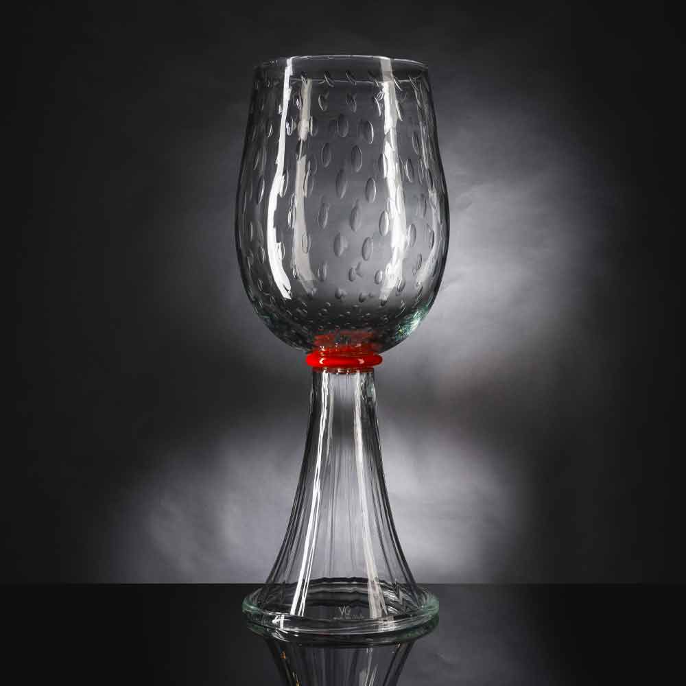Wazon do wnętrz z przezroczystego szkła Murano z czerwonymi detalami wyprodukowany we Włoszech.