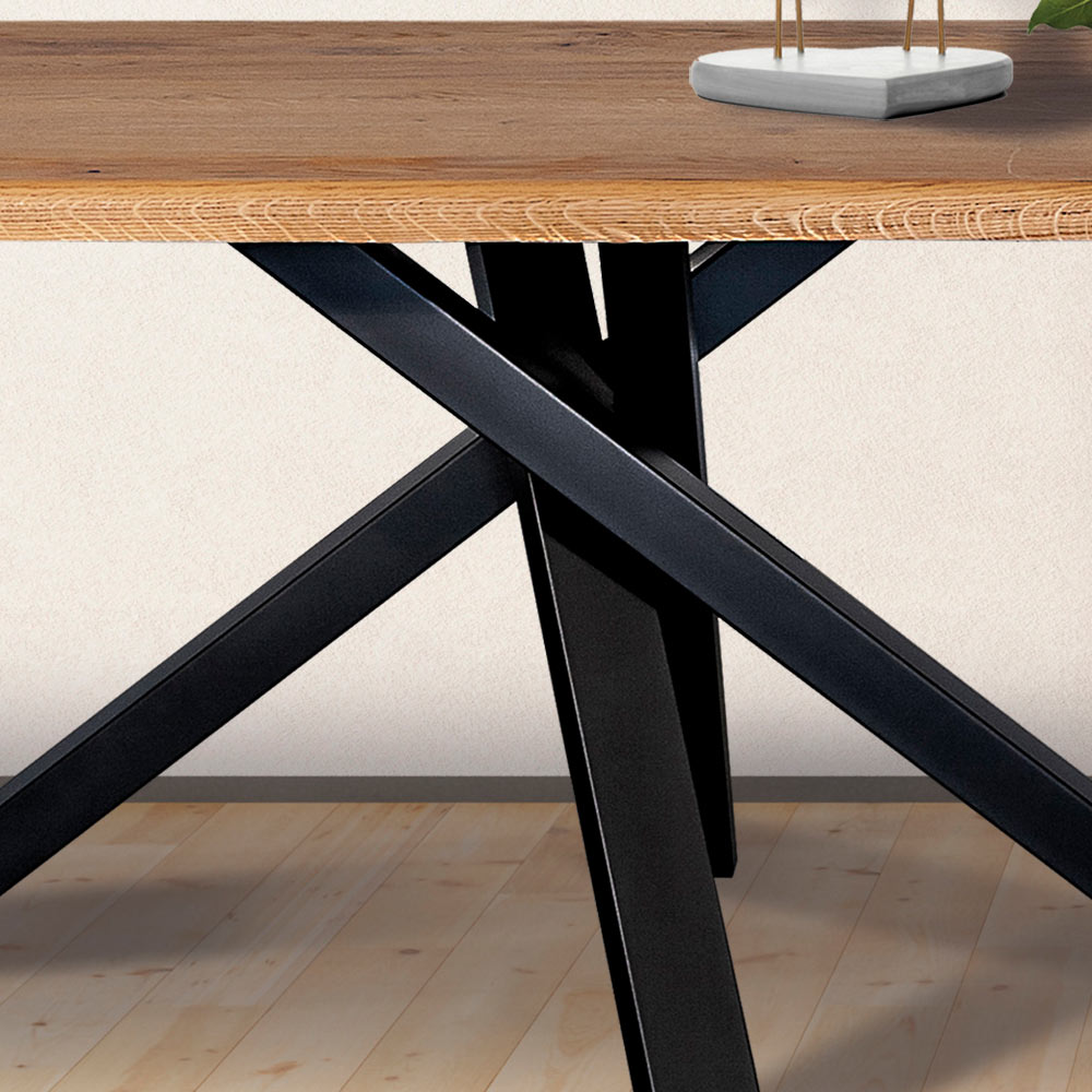 Stół z sękatego dębu i metalowej podstawy Made in Italy.
