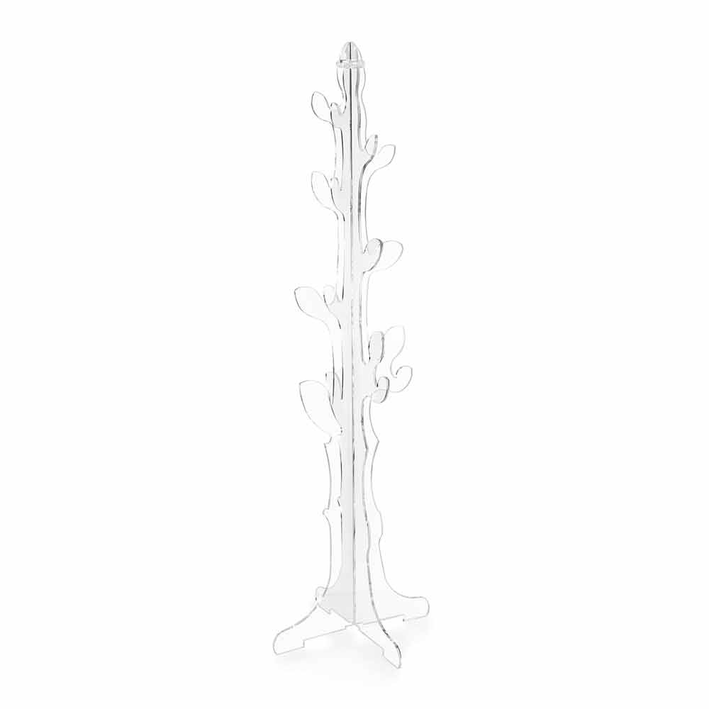 Przezroczysty wieszak podłogowy z pleksi do nowoczesnego projektu wejścia w kształcie drzewa, wykonany we Włoszech.