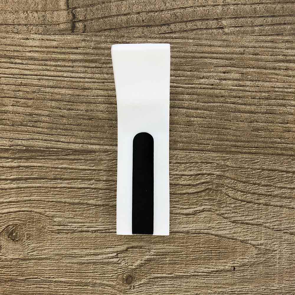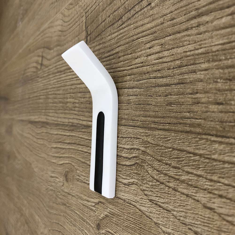 wieszaki ścienne wykonane są z białego corianu o grubości 6 mm z białą lub czarną wstawką.