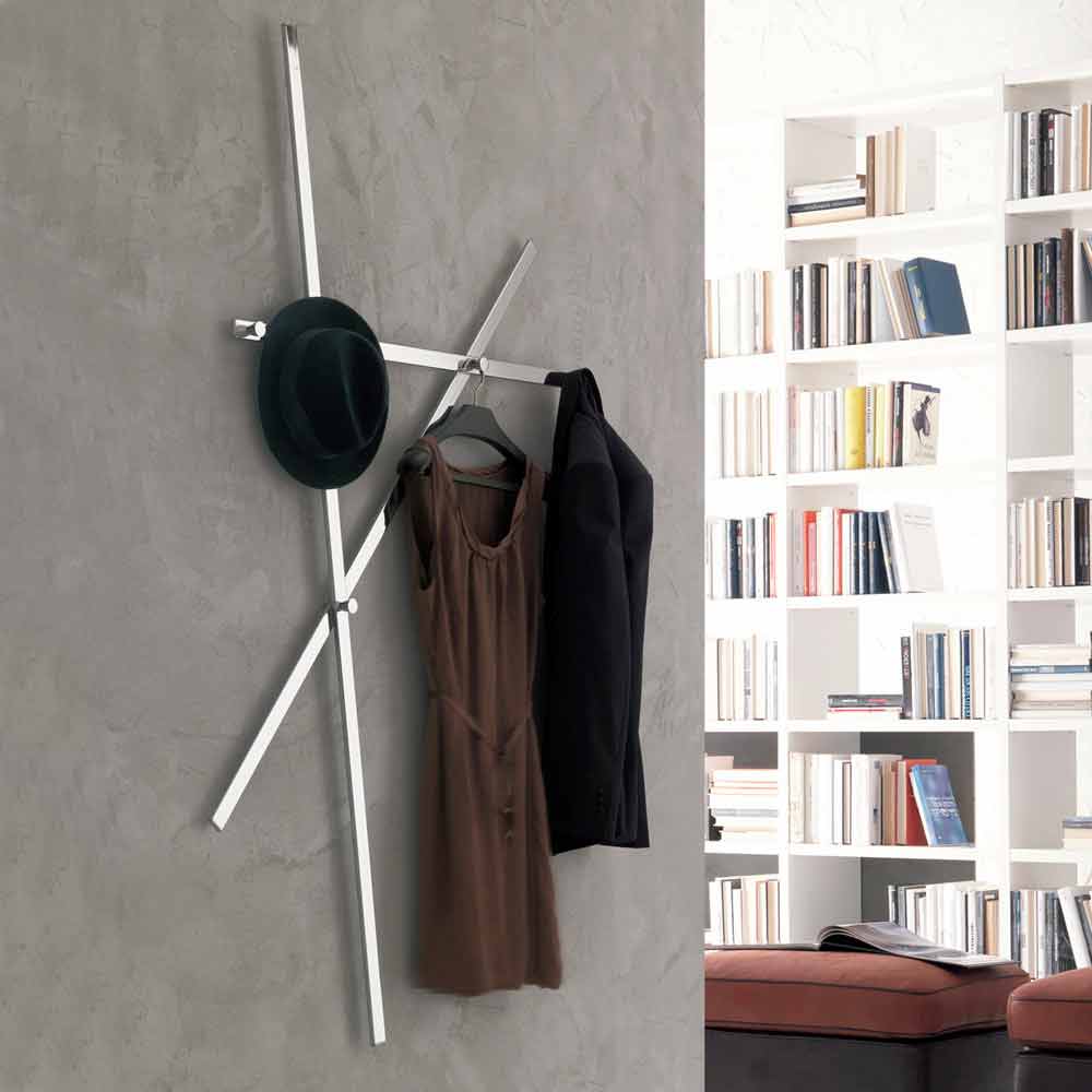 Nowoczesny wieszak na ubrania Lampa ściany wykonane we Włoszech malowane metalowej konstrukcji wyposażonej w 5 dopasowania haczyków. Stylizowany projekt charakteryzujący się prostymi liniami, które wykorzystują geometryczne kształty, aby wzbogacić estetykę produktu o osobowość. Dostępne wykończenia sprawiają, że jest to szczególnie wszechstronne rozwiązanie meblowe, dzięki czemu można je dostosować do każdego pomieszczenia w domu o nowoczesnym smaku, w którym uzupełnia meble, tworząc wspaniałą harmonię stylów. Wieszak jest podstawowym meblem w każdym domu i musi spełniać wymagania zarówno funkcjonalne, jak i projektowe. Estetyka jest tak naprawdę ważna, ponieważ tworzy harmonię z otaczającymi elementami i zapewnia praktyczne i wytrzymałe rozwiązanie, na którym można umieścić kurtki, płaszcze i torby po powrocie do domu. Ten wieszak uosabia te podstawowe cechy, okazując się idealnym wyborem, zdolnym zaspokoić każde życzenie w najbardziej ekskluzywny sposób.