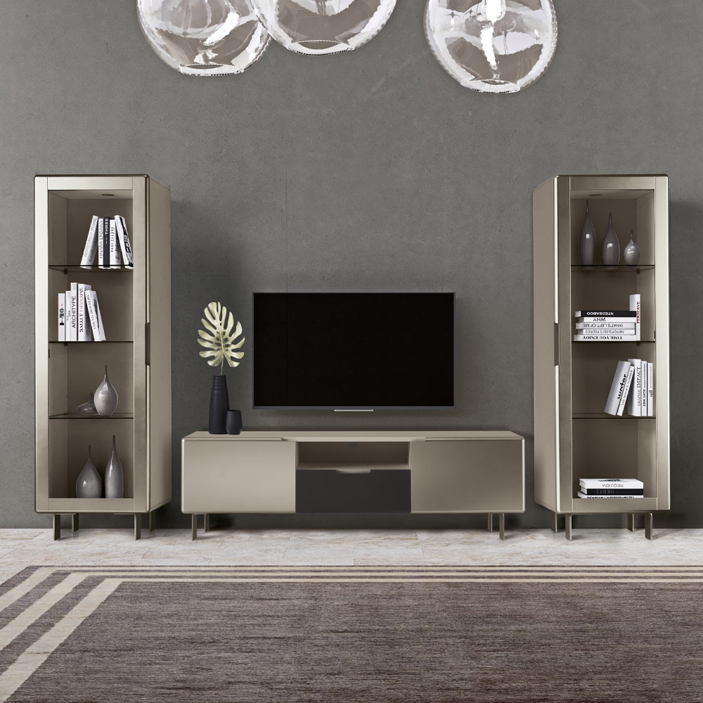 Witryna do salonu z niklowanym wykończeniem MDF Wyprodukowano we Włoszech
