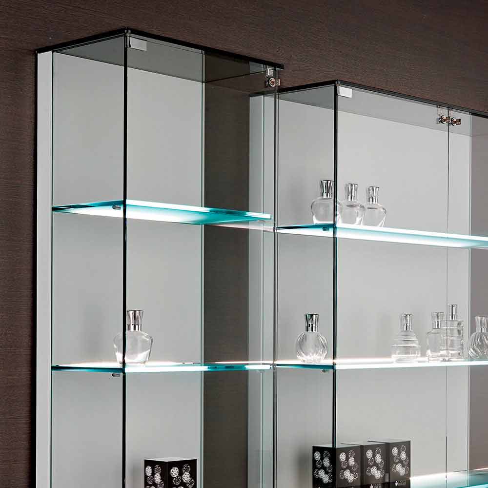 Swoją elegancję maksymalnie wyzwolą trawione kwasem szklane półki oświetlone światłem LED o maksymalnej nośności 7,5 kg każda.
