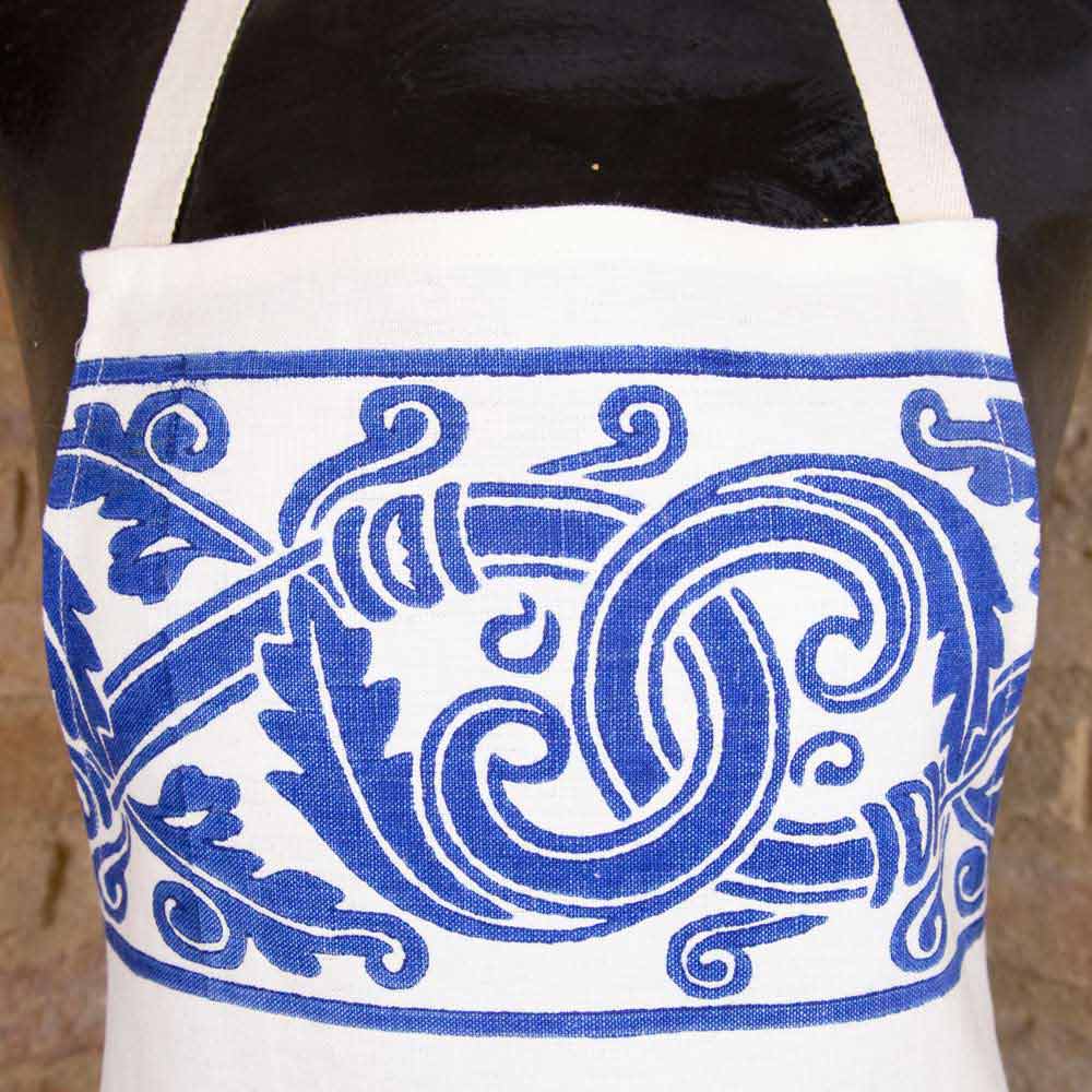 Fartuch kuchenny ze śliniakiem i kieszeniami wysokiej jakości z czystego lnu ze starożytnym ręcznie drukowanym wzorem artystycznym, dostępny w trzech wariantach, wyjątkowy kawałek włoskiej jakości.