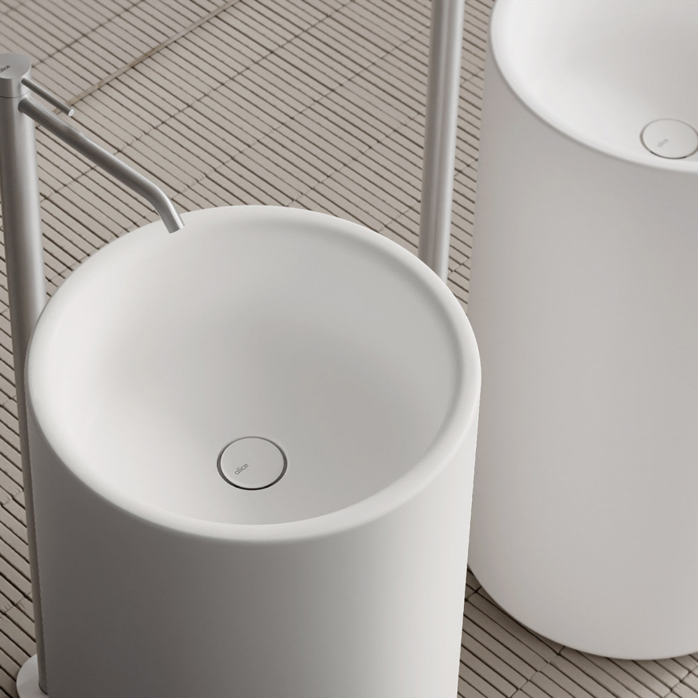 Ta wolnostojąca ceramiczna umywalka ma prosty i harmonijny cylindryczny kształt, który jest w stanie przekształcić łazienkę w wyrafinowaną przestrzeń o wyjątkowym charakterze.