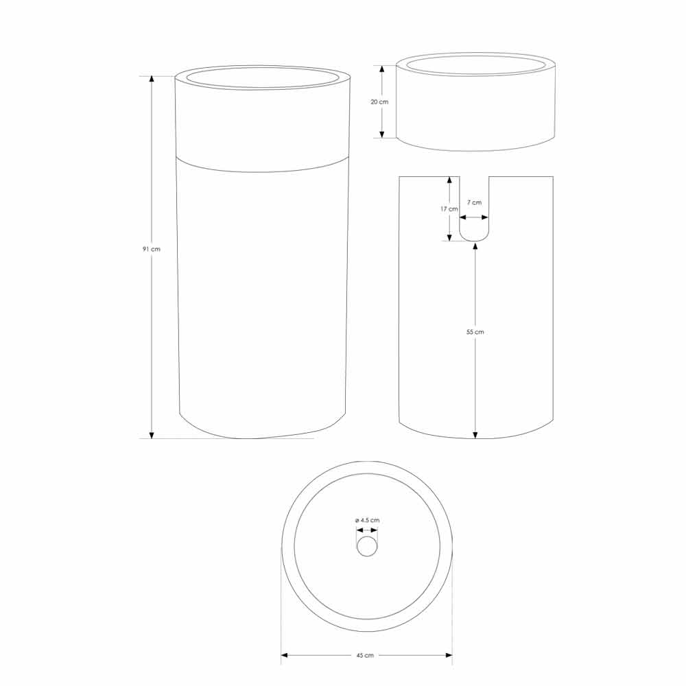 Wolnostojąca umywalka łazienkowa z marmurową kolumną, nowoczesny design.