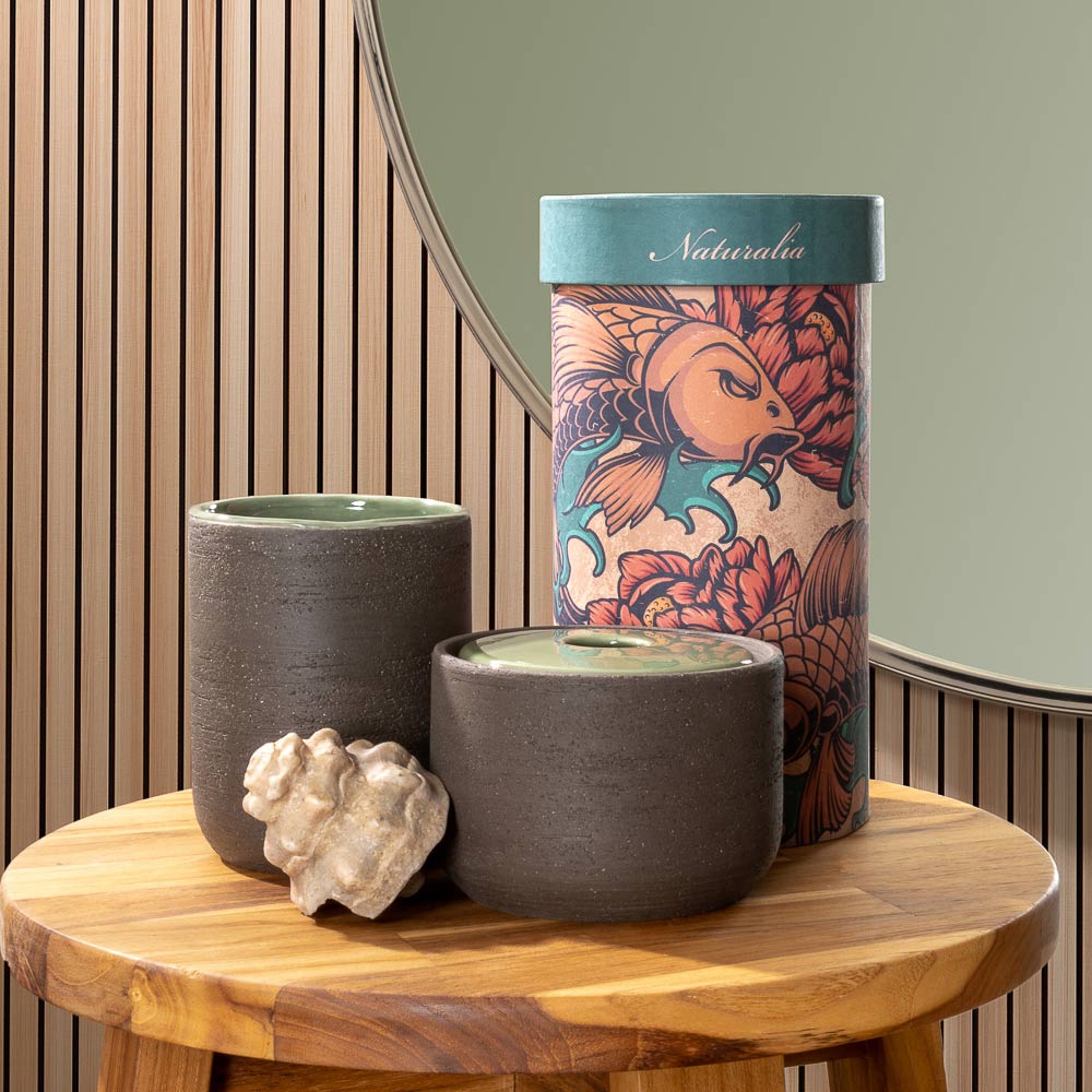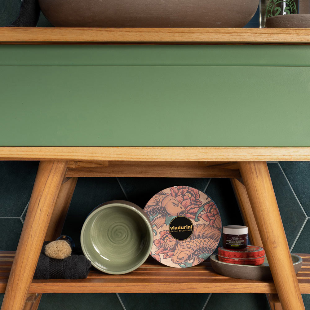 Akcesoria łazienkowe z gliny ogniotrwałej z emaliowanym na zielono wnętrzem Made in Italy.