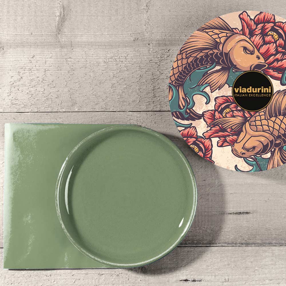 ręcznie robione we Włoszech , emaliowane wewnątrz z zielonym wykończeniem, kolorem przywodzącym na myśl wiosnę i kwitnienie roślin, przywracając pierwotny kontakt z naturą. Każdy element kompozycji charakteryzuje się szczególnymi detalami, takimi jak