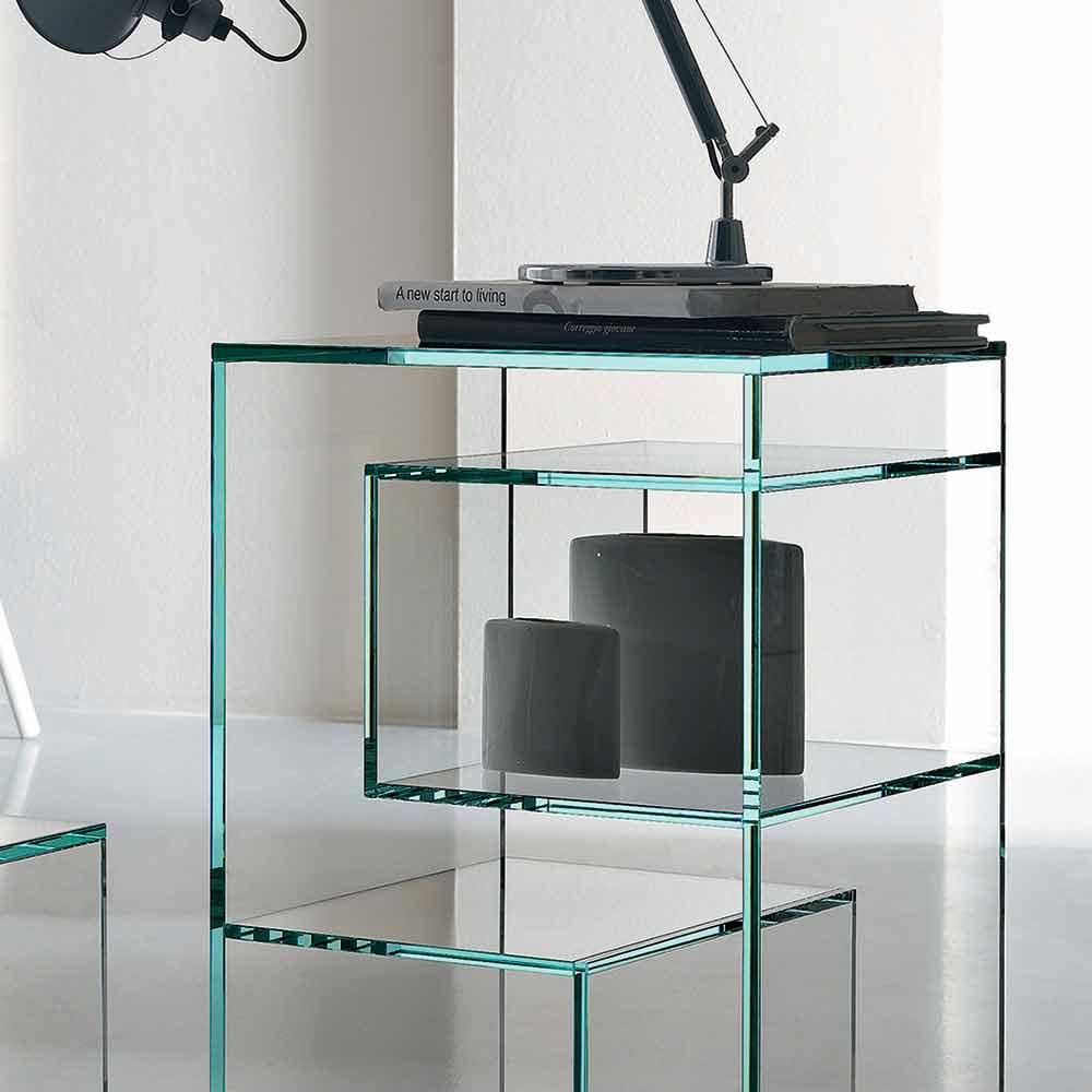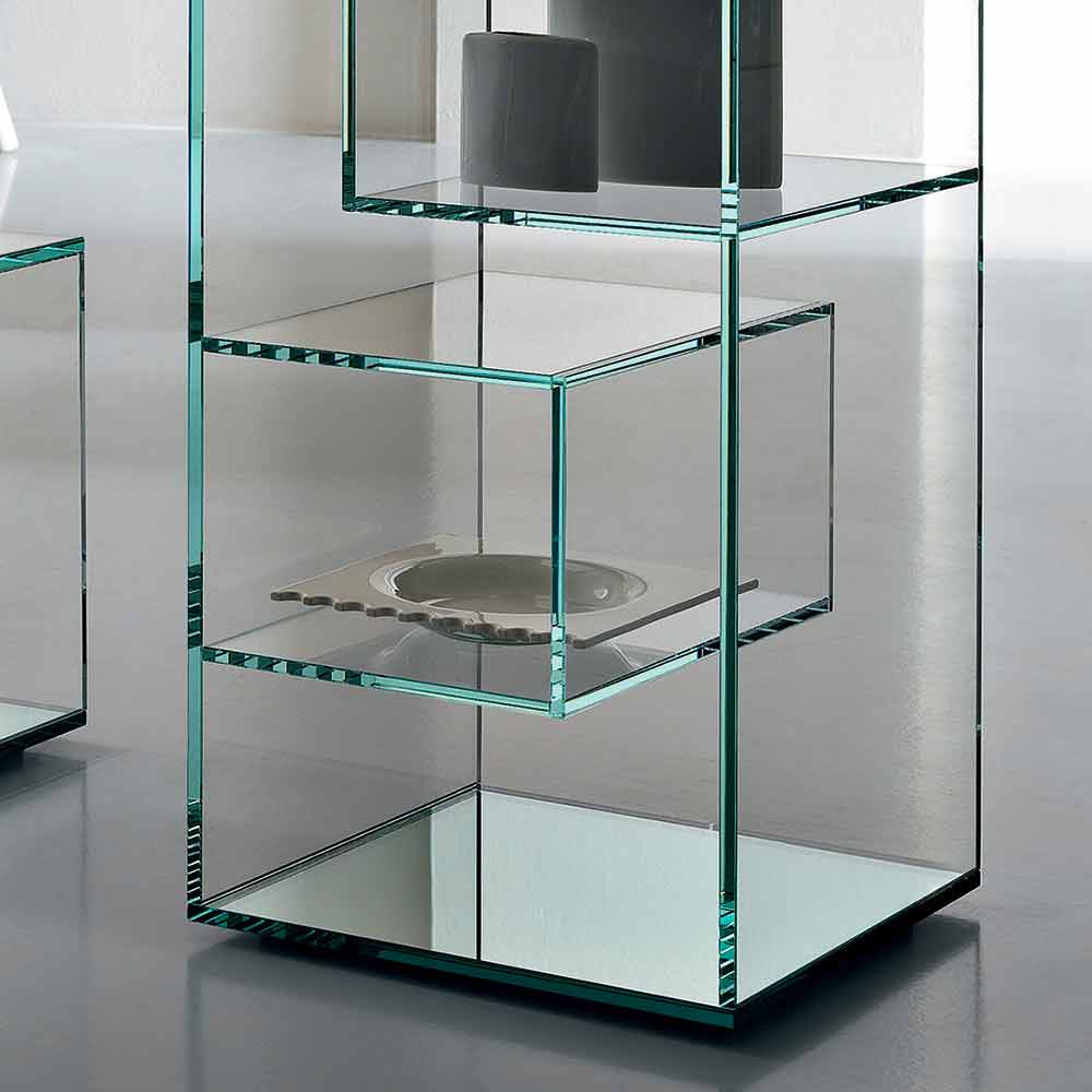 Regał ten charakteryzuje się zdecydowanym i eleganckim designem w całości wykonanym z wyjątkowo przejrzystego szkła.