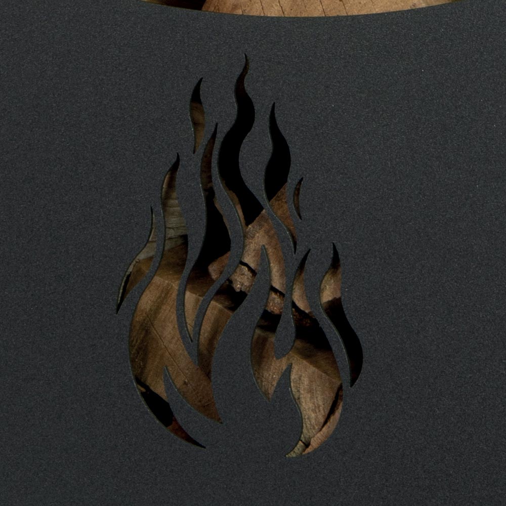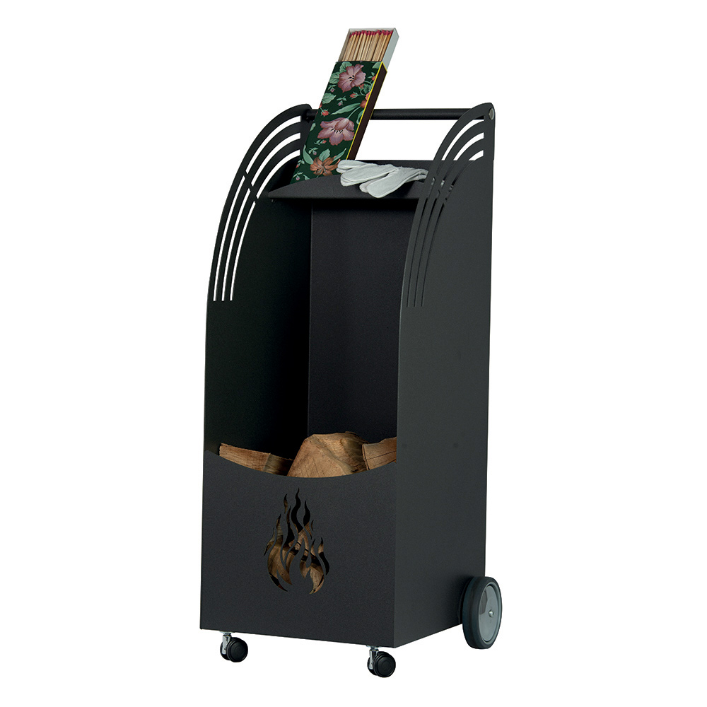 Wózek wyposażony jest w solidne koła , które zapewniają łatwą mobilność, umożliwiając łatwe i bezproblemowe przenoszenie drewna z jednego miejsca do drugiego. Wycięcie płomieniowe na panelu przednim nie tylko wzbogaca estetykę wózka, ale także wspomaga wentylację, niezbędną do utrzymania drewna suchego i gotowego do użycia.