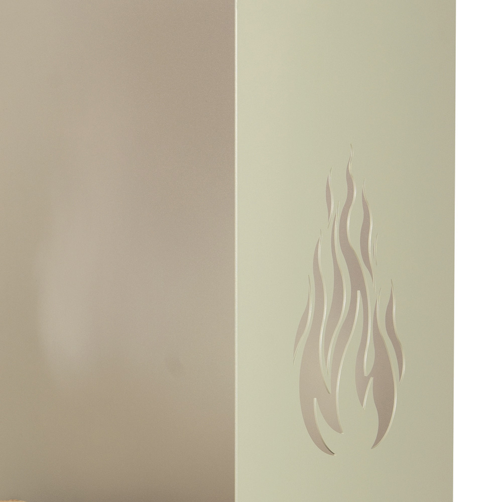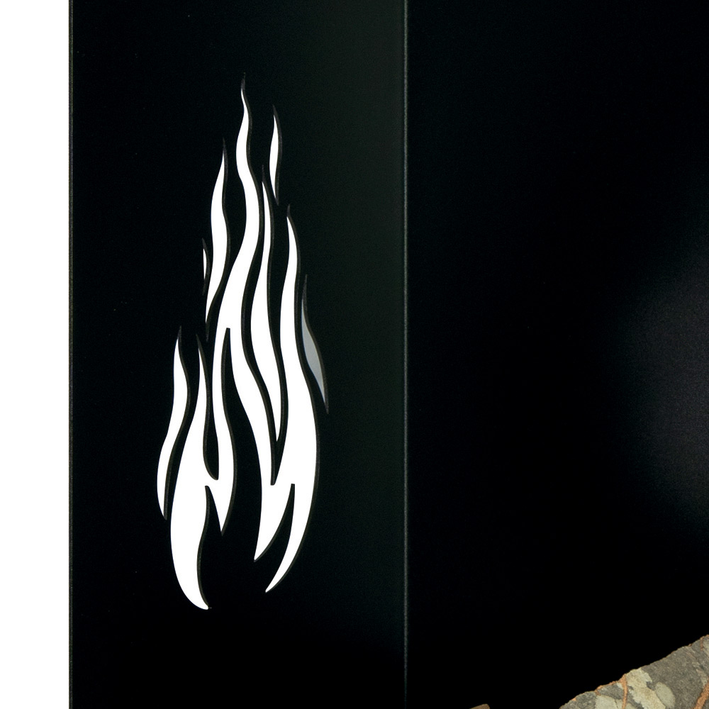 Metalowy stojak na drewno to idealne połączenie estetyki i praktyczności , niezbędny przedmiot dla miłośników tradycyjnego kominka. Konstrukcja jest nowoczesna i solidna , z motywami płomieni po obu stronach, które nie tylko upiększają mebel, ale także pozwalają zobaczyć drewno przechowywane w środku, natychmiast sugerując jego przeznaczenie.