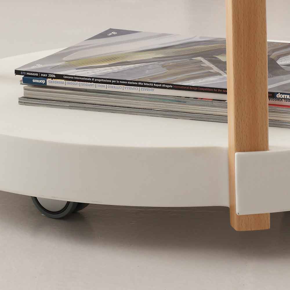 Wózek serwujący Pineto, wykonany z drewna bukowego i białego polipropylenu, nowoczesny design.