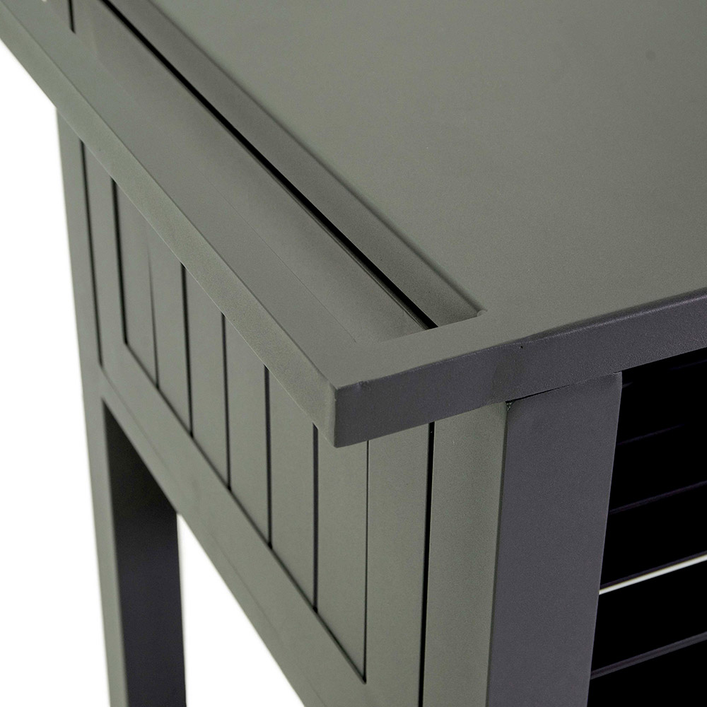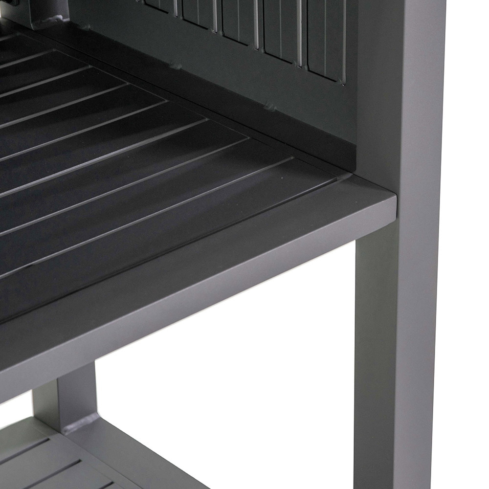 Oferując przykładowe powierzchnie robocze i magazynowe, konstrukcja obejmuje poręczną górną półkę do przygotowywania i serwowania, środkową półkę do przechowywania przyborów i akcesoriów pod ręką oraz dużą dolną półkę idealną do przechowywania dodatkowych materiałów lub dużych narzędzi ogrodowych.