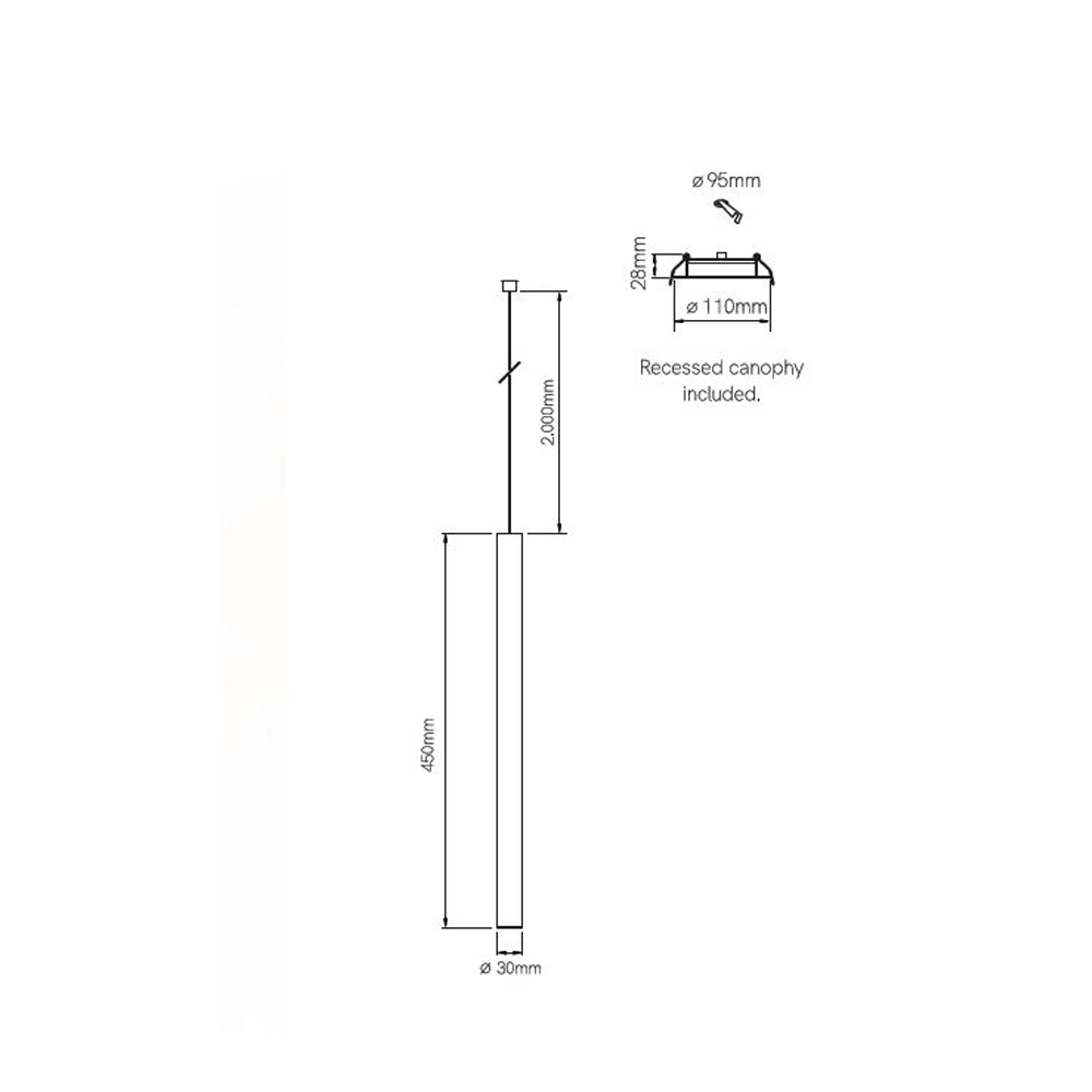 Zwieszany reflektor wpuszczany z białego lub czarnego aluminium z diodą LED.
