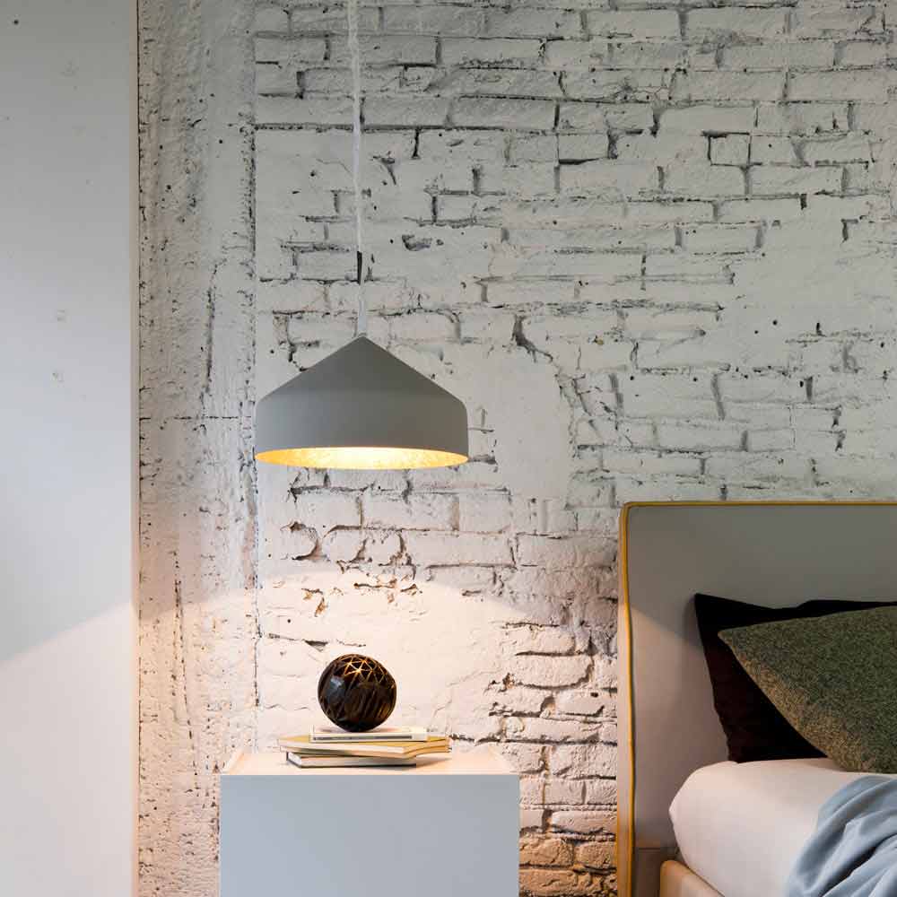 Zawieszona lampa Cyrcus Cemento definiuje wszystkie środowiska tworzące poruszającą i scenograficzną atmosferę.