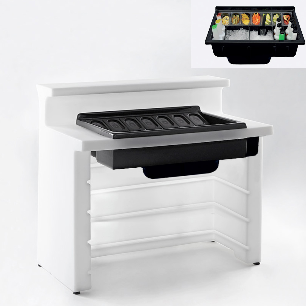 Wykonany jest z jasnobiałego polietylenu i jest bardzo wszechstronny dzięki różnym opcjonalnym komponentom, które można wybrać, aby uczynić go jeszcze bardziej funkcjonalnym i kompletnym meblem. Obejmują one: