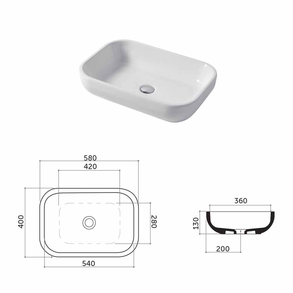 L 58 x P 40 x H 13 cm - wersja nablatowa