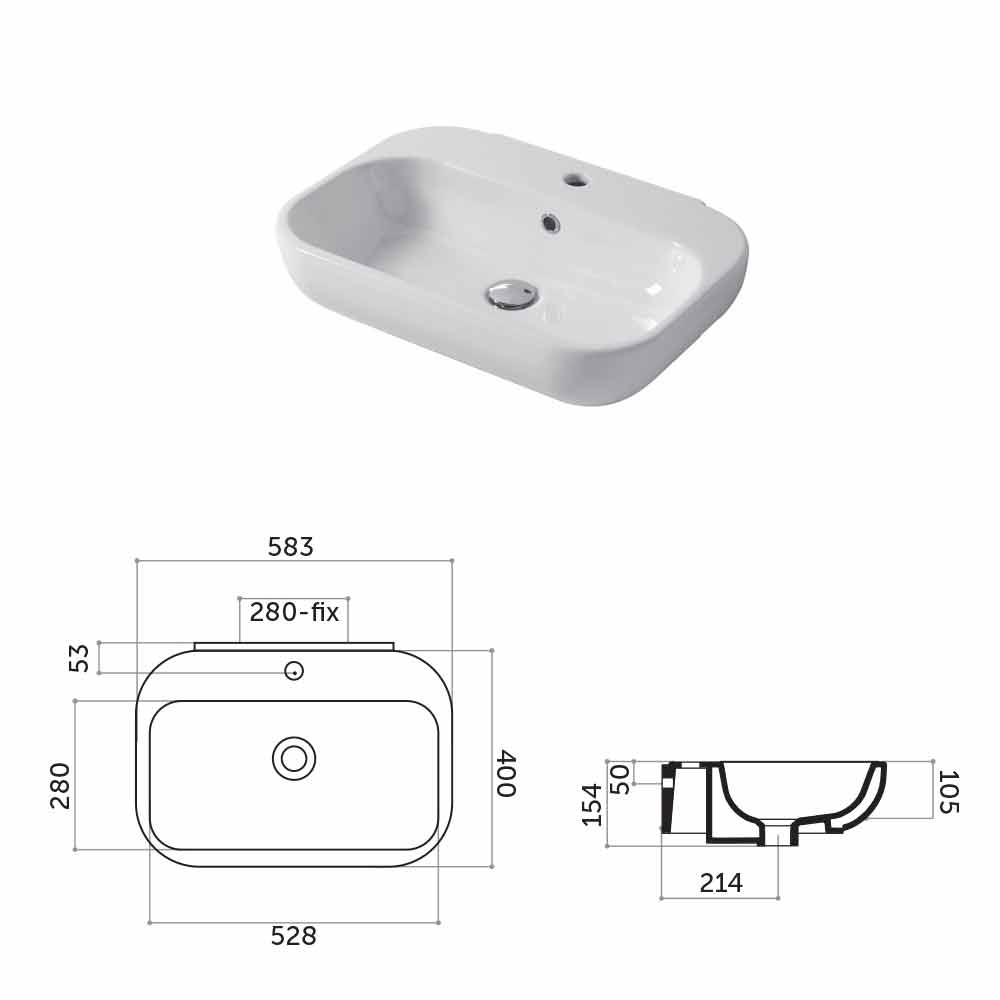 Umywalka ceramiczna nablatowa i ścienna: Riardo