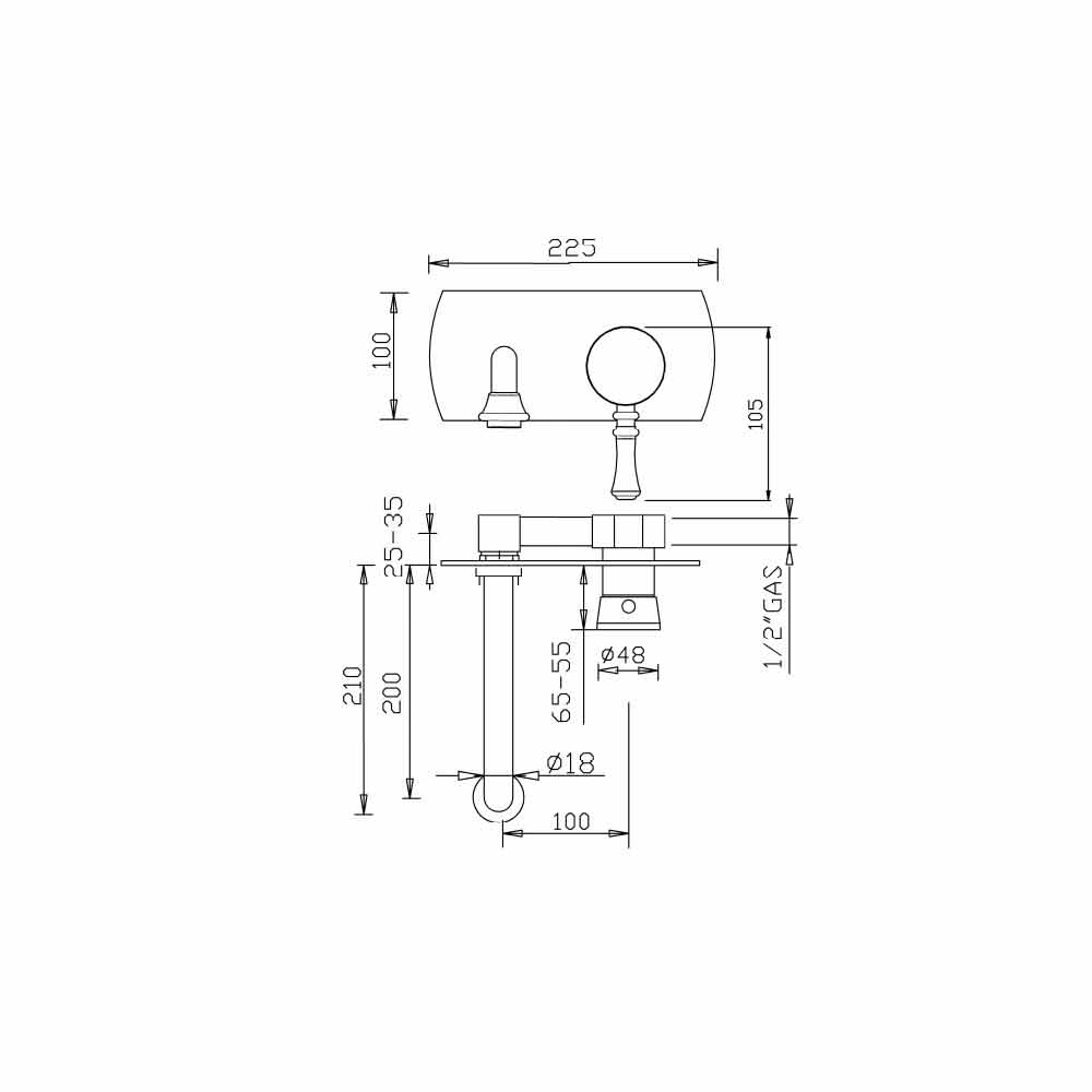 Bateria umywalkowa ścienna z pojedynczą płytą Made in Italy.