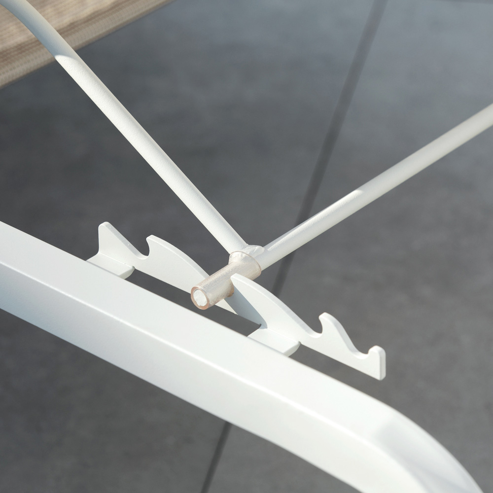Konserwacja : Aby zapewnić jak najdłuższą żywotność produktu, zalecamy przechowywanie go w pomieszczeniach i suchych miejscach w sezonie zimowym, aby zapobiec uszkodzeniu powłoki lakierniczej konstrukcji przez wilgoć. Jeśli produkt jest umieszczony w strefie nadmorskiej, jako dodatkowy środek ostrożności zalecamy czyszczenie powierzchni delikatnymi detergentami co dwa/trzy miesiące, a następnie zabezpieczenie ich produktami na bazie oleju. Jeśli chodzi o siedzisko, zalecamy unikanie kontaktu z tłustymi substancjami lub barwnikami, aby zapobiec ich wchłonięciu przez materiał i ewentualnemu zniszczeniu przez powstawanie nieusuwalnych plam. Do częstego czyszczenia należy używać wody i nieściernych, bezbarwnych i neutralnych pod względem pH detergentów.