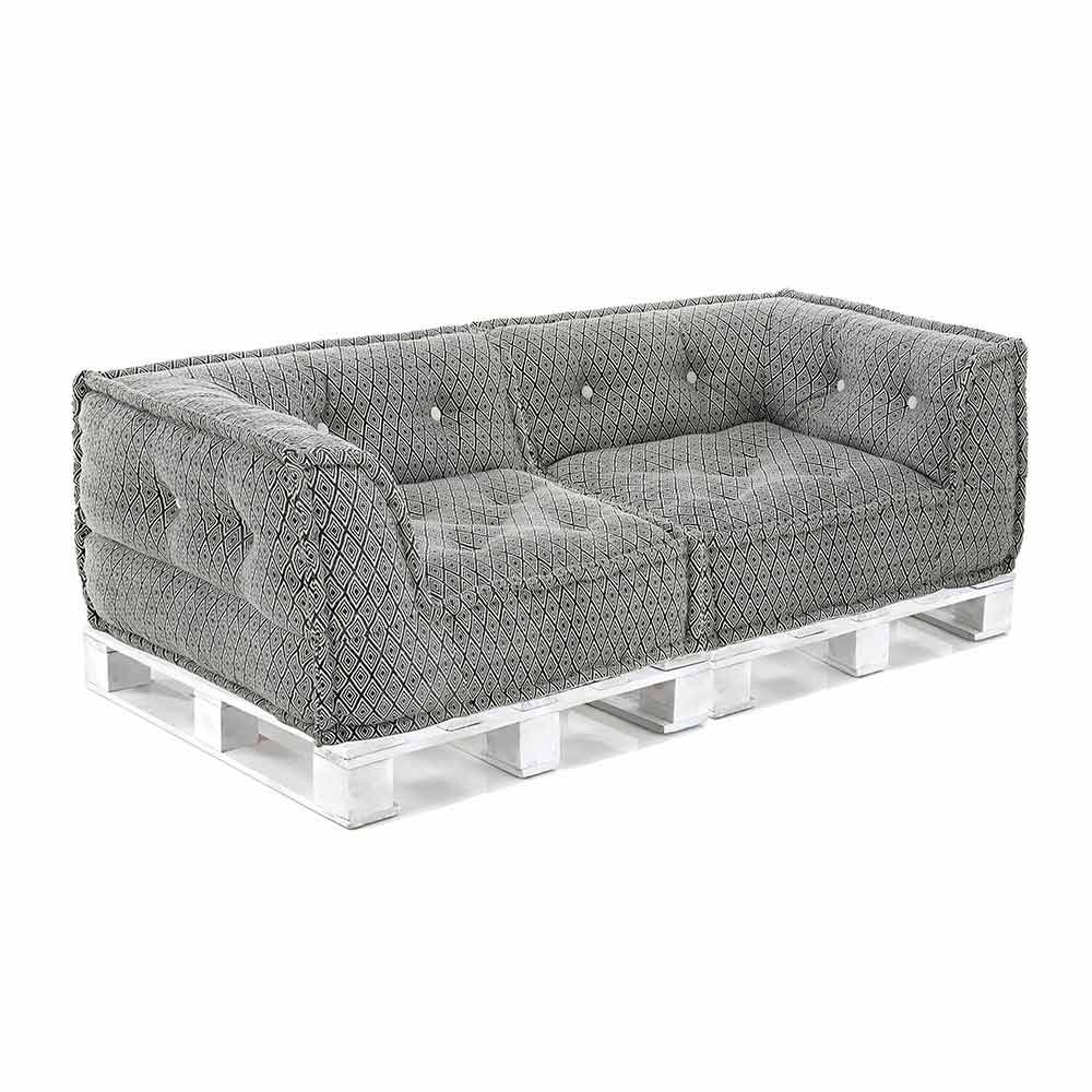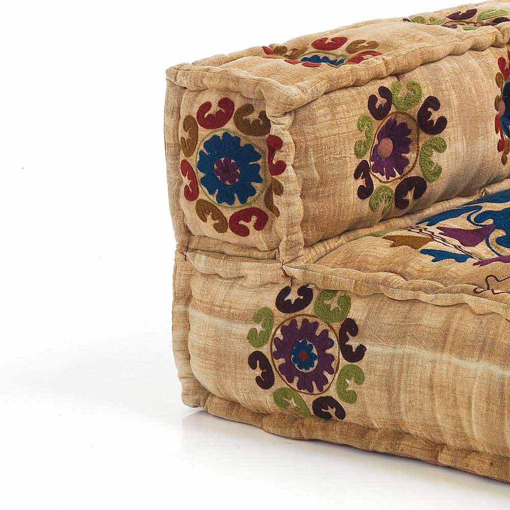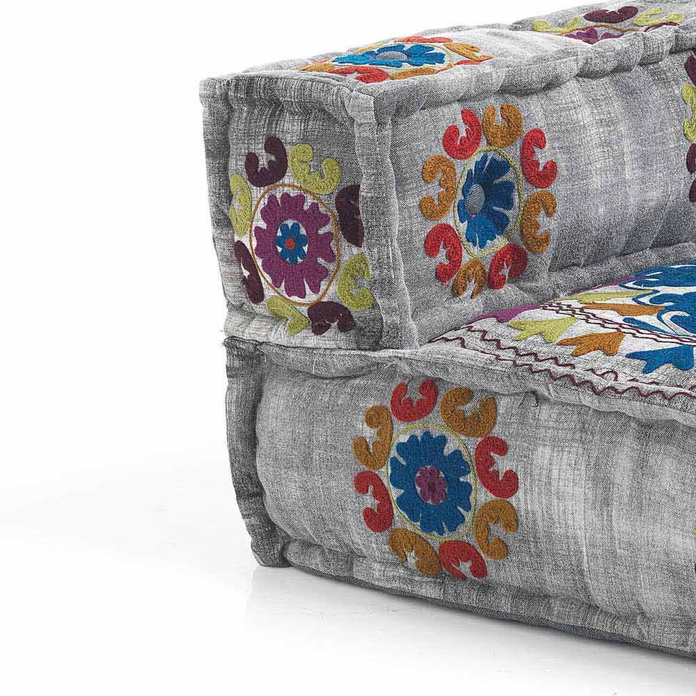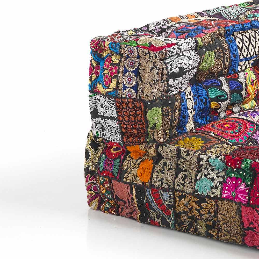 Wyściełana dwuosobowa sofa etniczna w patchworku i drewnie - włóknie