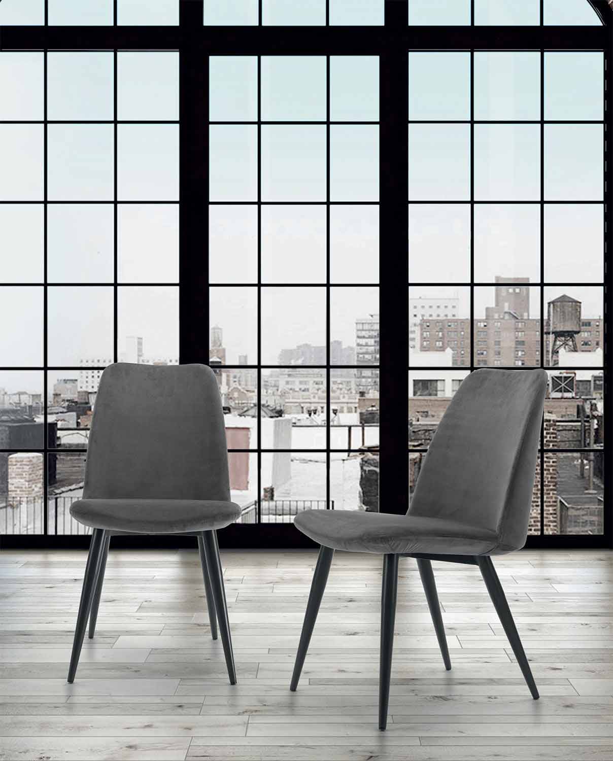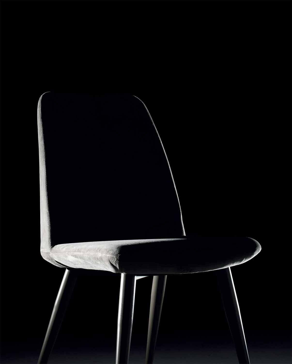 Krzesło kuchenne o nowoczesnym designie z podstawą ze stali lakierowanej na kolor grafitowy i siedziskiem z tkaniny, aksamitu lub skóry; ręcznie robione we Włoszech.
