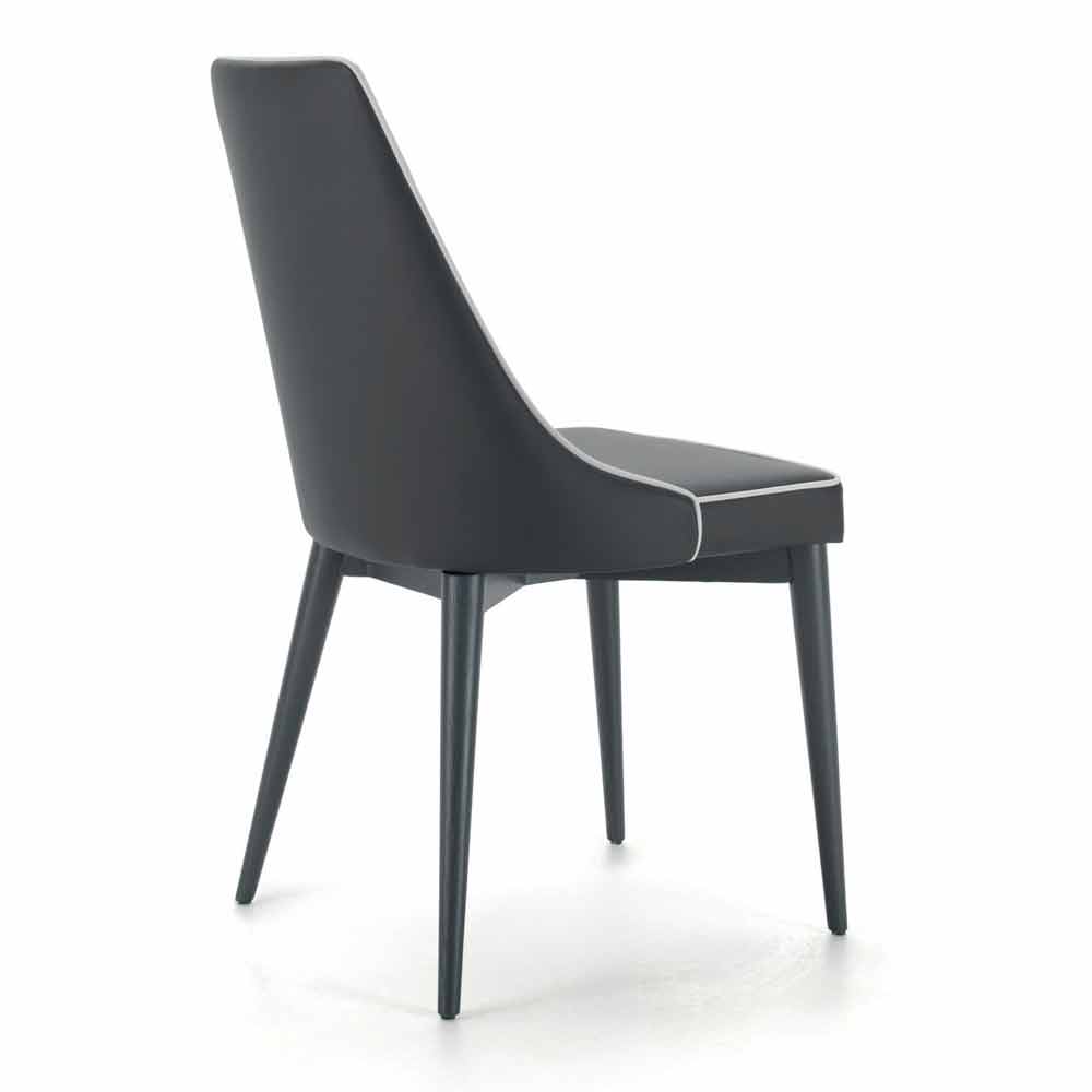 Luksusowe wyściełane krzesło z podstawą ze stali grafitowej i siedziskiem z ekoskóry z białą lamówką; ręcznie robione we Włoszech.