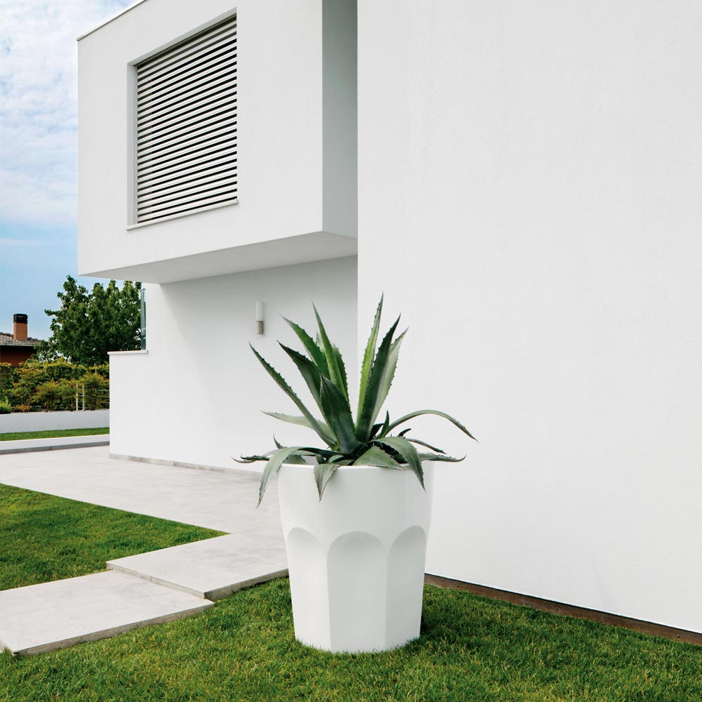 polietylenu dostępnego w wersji nieprzezroczystej charakteryzującej się doskonałą odpornością na słońce, wstrząsy i ciepło, w wersji odpornej i jasno lakierowanej, która pozwala tworzyć gry światła i refleksów, które stają się bohaterami wewnątrz otoczenia lub wreszcie w wersji metalicznej. Urodzony jako prosty dekoracyjny wazon na średnie / duże rośliny, ten produkt jest również idealny na przyjęcia lub imprezy plenerowe do chłodzenia butelek wypełnionych lodem.