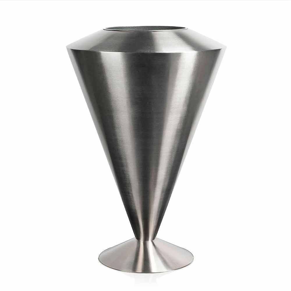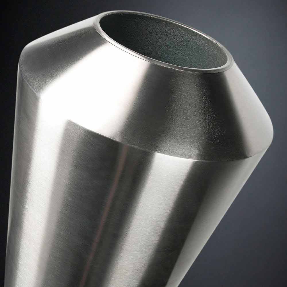 Wazon dekoracyjny do wnętrz ze stali satynowej wyprodukowany we Włoszech.