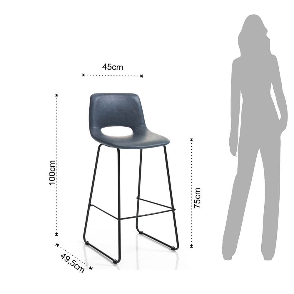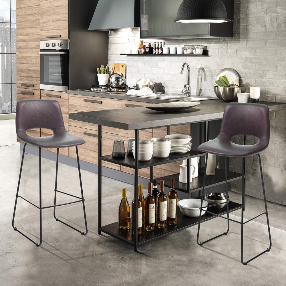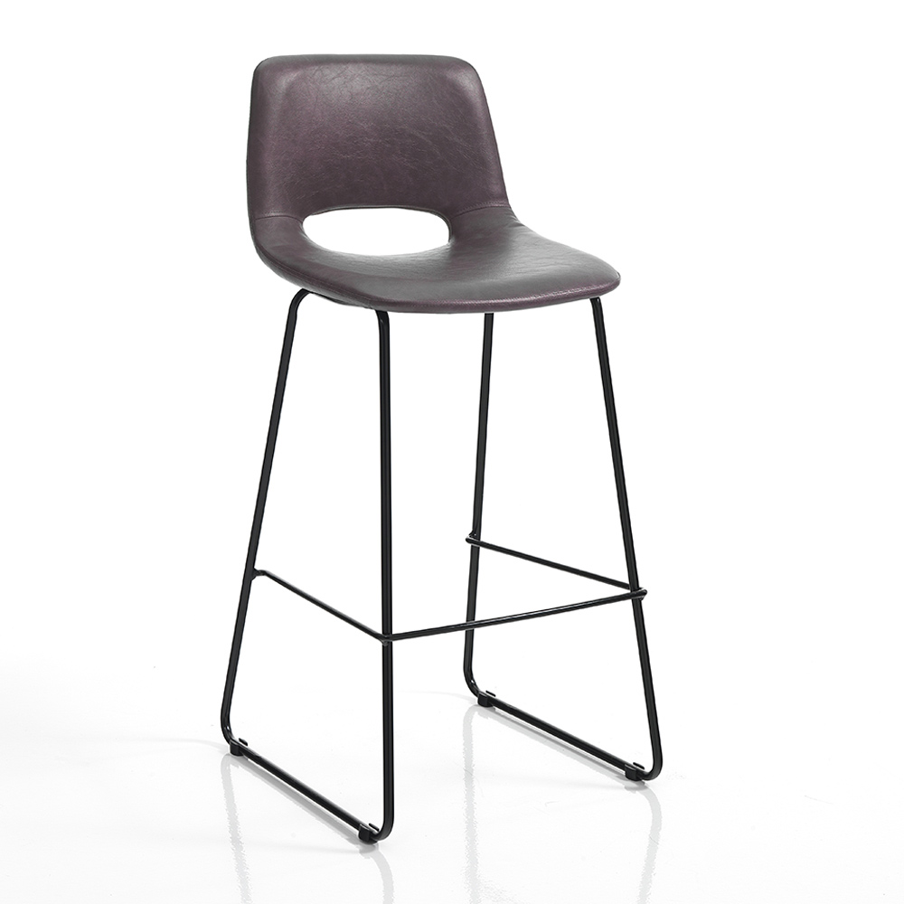 Wysoki stołek kuchenny z malowanego metalu i syntetycznej skóry, 2 sztuki.