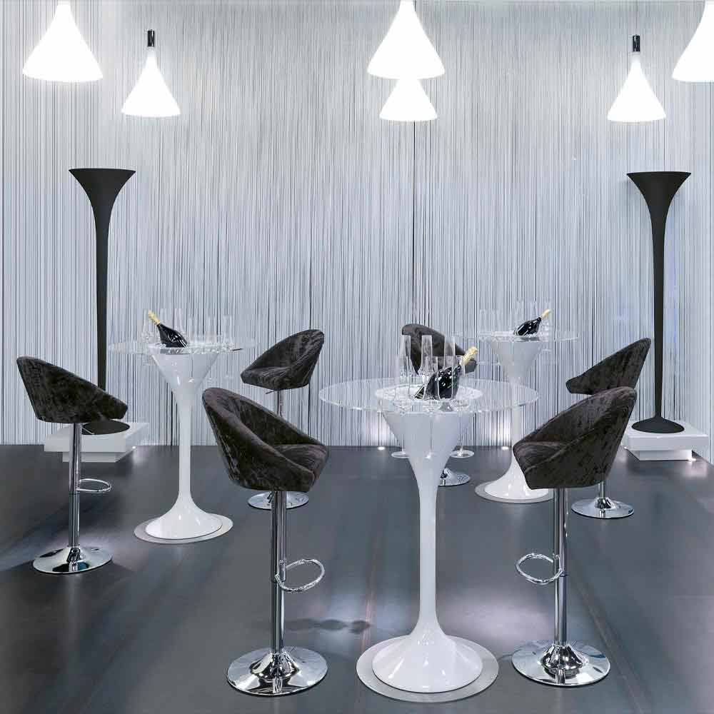 Wysoki stołek idealny do blatów barowych lub kuchennych wykonany w całości we Włoszech z chromowaną stalową konstrukcją, skorupą ze sklejki, wyściółką z pianki poliuretanowej o otwartych komórkach o różnych gęstościach i aksamitną tapicerką. Design i funkcjonalność łączą się , aby ożywić ten wspaniały i elegancki mebel , charakteryzujący się miękkimi kształtami i liniami , które przeplatają się , tworząc wygodne i otaczające siedzisko idealne do pomieszczeń mieszkalnych lub powierzchni kontraktowych o współczesnym i wyrafinowanym stylu . Jego osobliwością jest regulowany podnośnik, który maksymalizuje funkcjonalność stołka wraz z praktycznym podnóżkiem, który pozwala utrzymać wygodną i przyjazną pozycję . Powstaje zatem wyrafinowany dodatek meblowy, który uosabia komfort i design dzięki wykonaniu w 100% Made in Italy i wykorzystaniu wysokiej jakości surowców, które podkreślają wartość i wartość tego eleganckiego stołka.