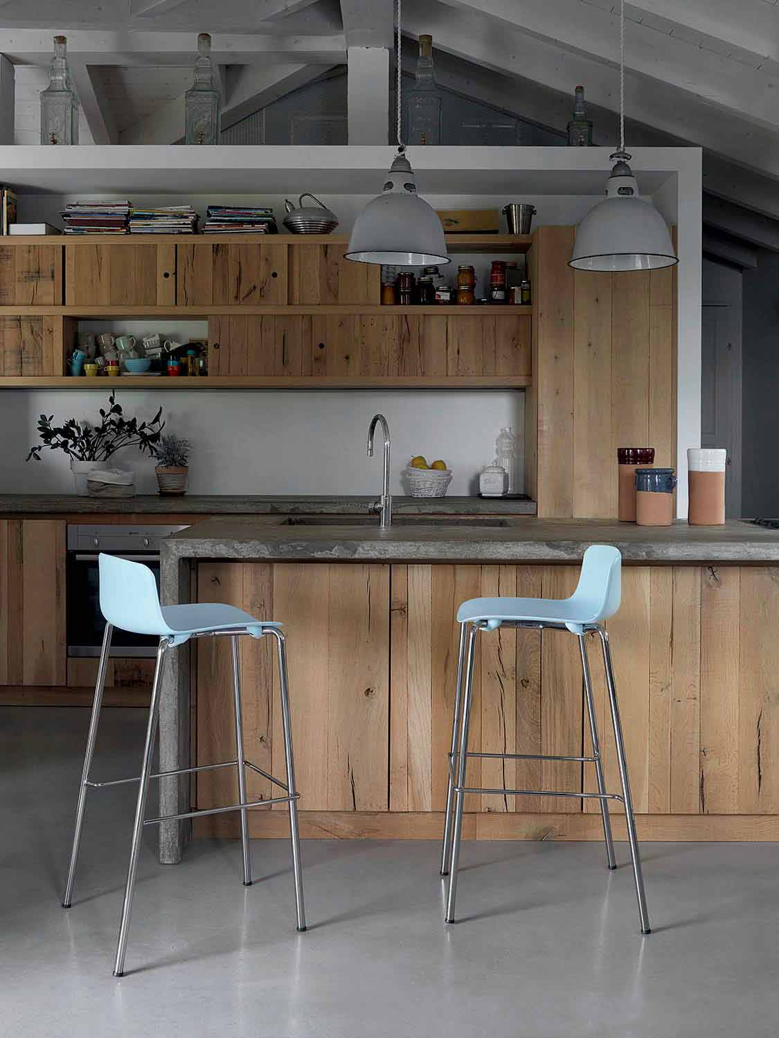 2 taborety metalowe i polipropylenowe z oparciami na plecach Made in Italy.